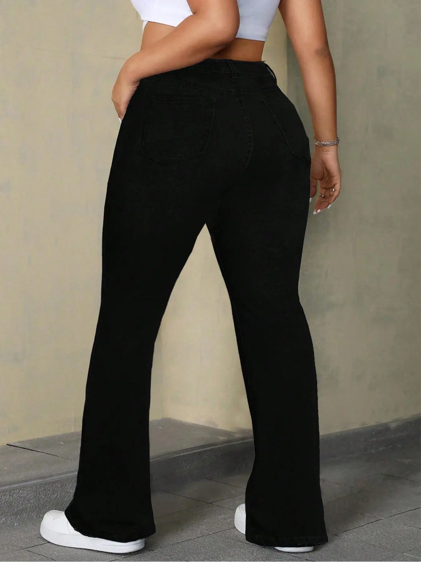 5. 【Plus Size】 Basic Solid Color Flare Leg Jeans, Casual Comfy Denim Pants for Daily Wear, Women's Bottoms for All Seasons