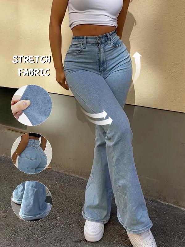5. Women's Light Blue Washed Slim Fit Flare Jeans, Fashionable Comfortable Casual Denim Jeans, All Season Wear, Trendy Ladies' Clothing