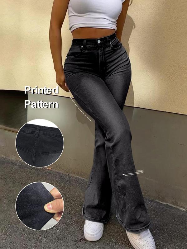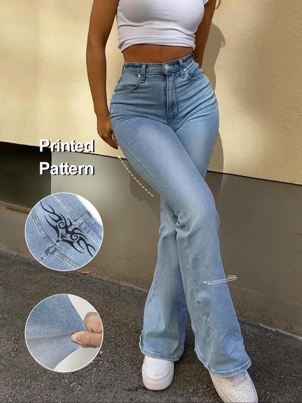 Women's Light Blue Washed Slim Fit Flare Jeans, Fashionable Comfortable Casual Denim Jeans, All Season Wear, Trendy Ladies' Clothing