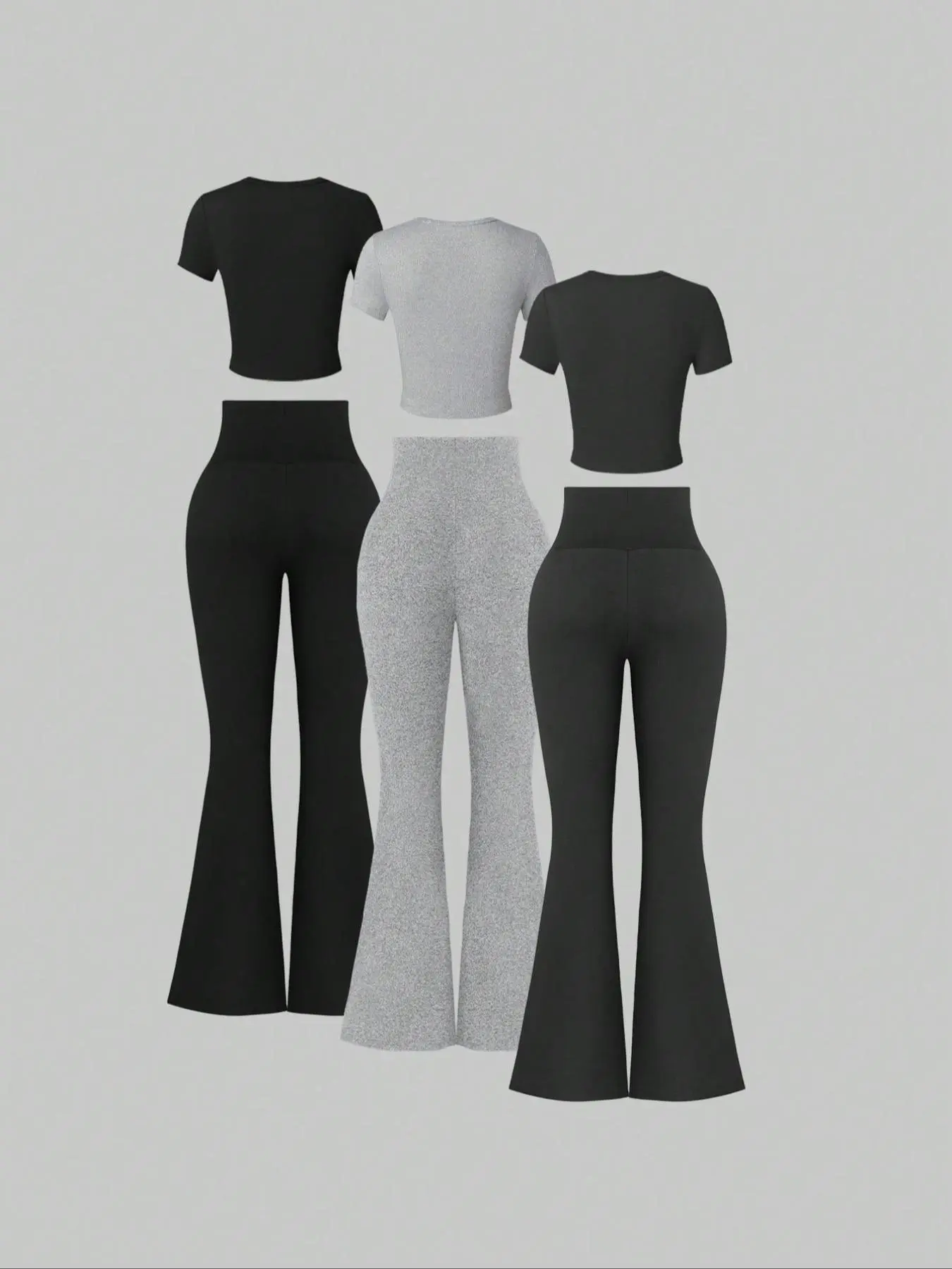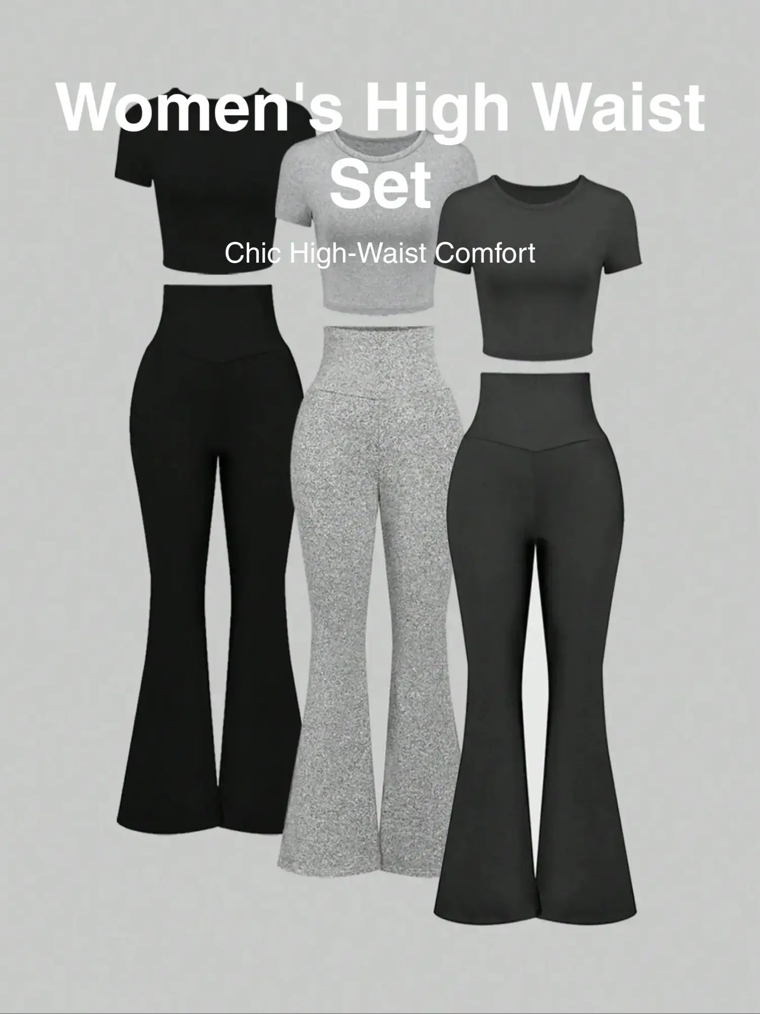 5. Women's Solid Top & High Waist Flare Leg Pants Set, Casual Chic Fashion Cozy Round Neck Tee & Bell Bottom Trousers for Daily Outdoor Wear, Ladies Clothes for All Seasons