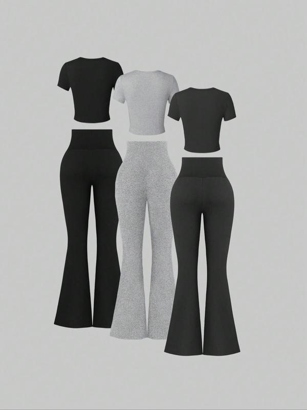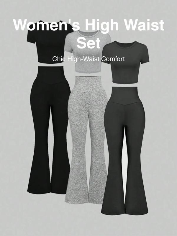 5. Women's Solid Top & Flare Leg Pants Set, Casual Chic Fashion Cozy Round Neck Tee & Bell Bottom Trousers for Daily Outdoor Wear, Ladies Clothes for All Seasons