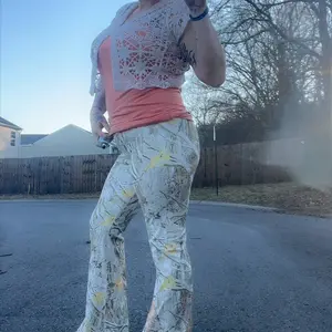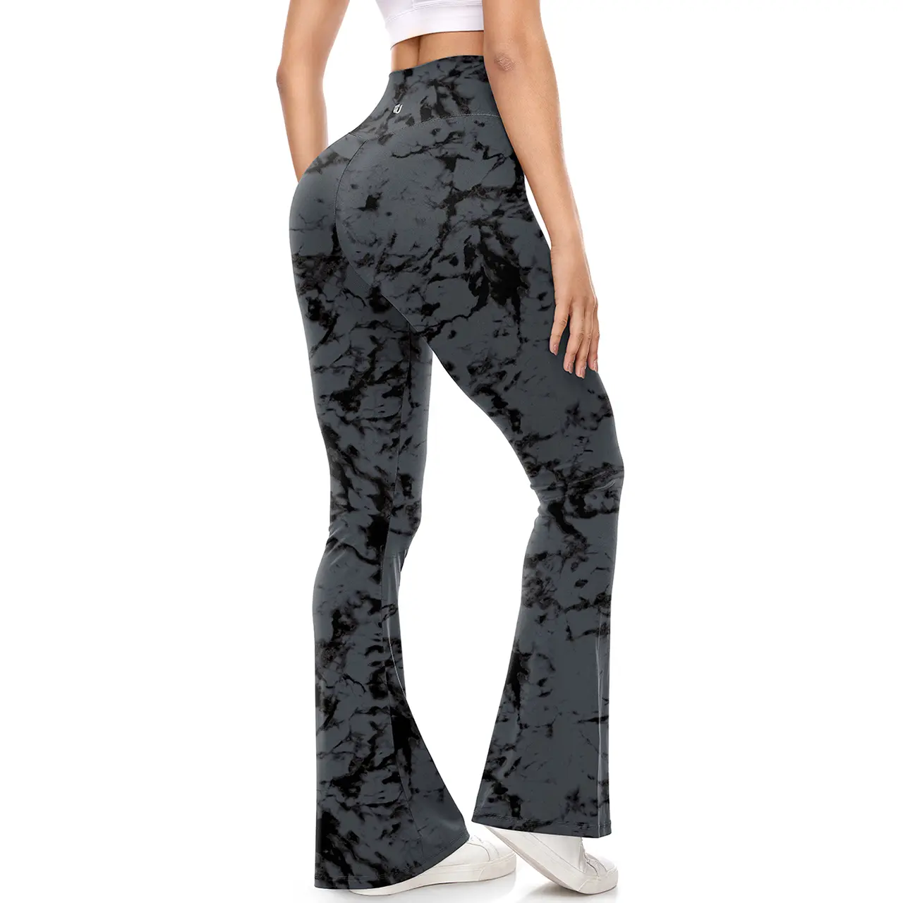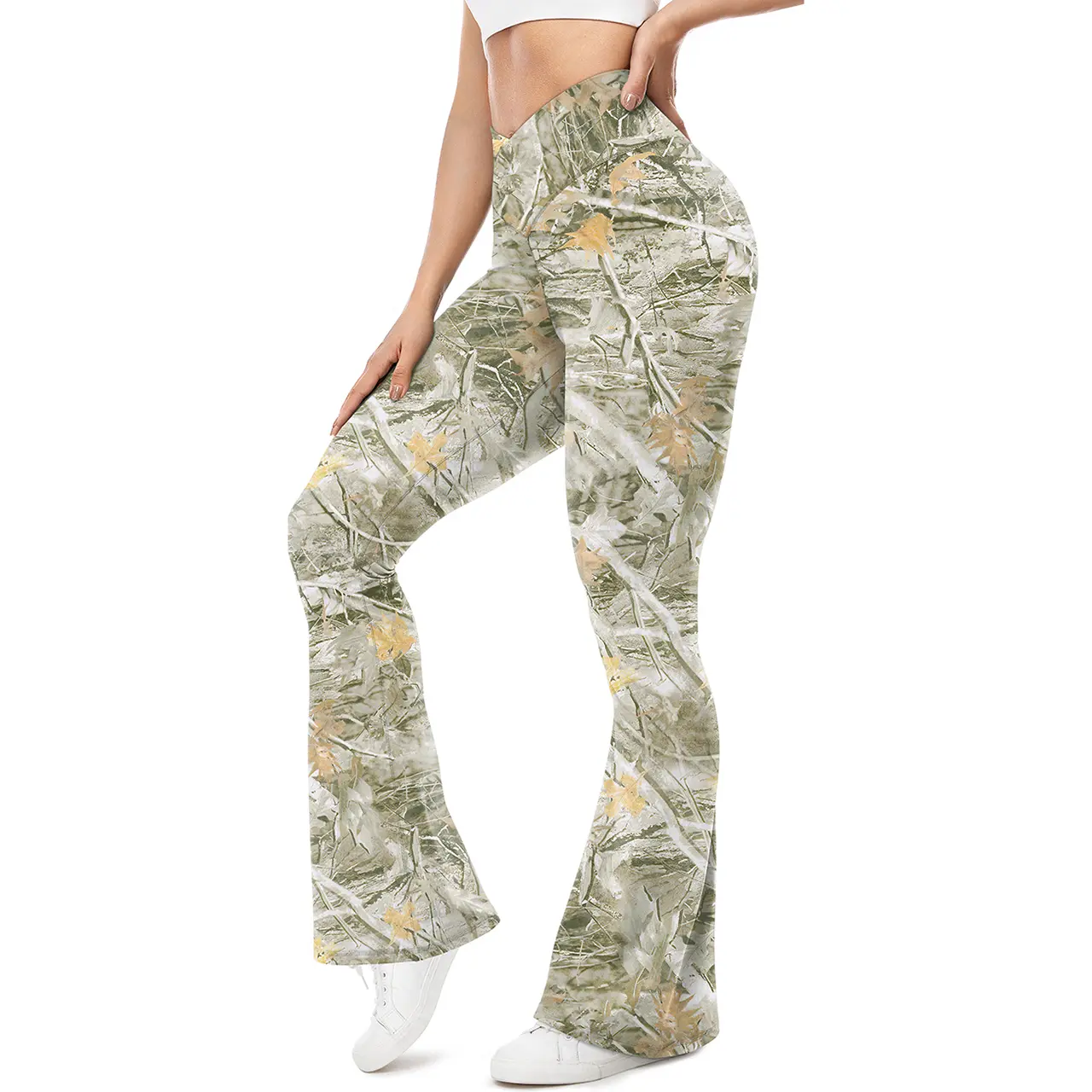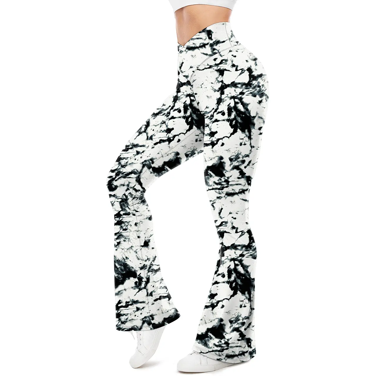 Flattering leggings with V crossover high waistband and flowy flare give an elegant look. Perfect for yoga, pilates, and beyond, providing all-day comfort.