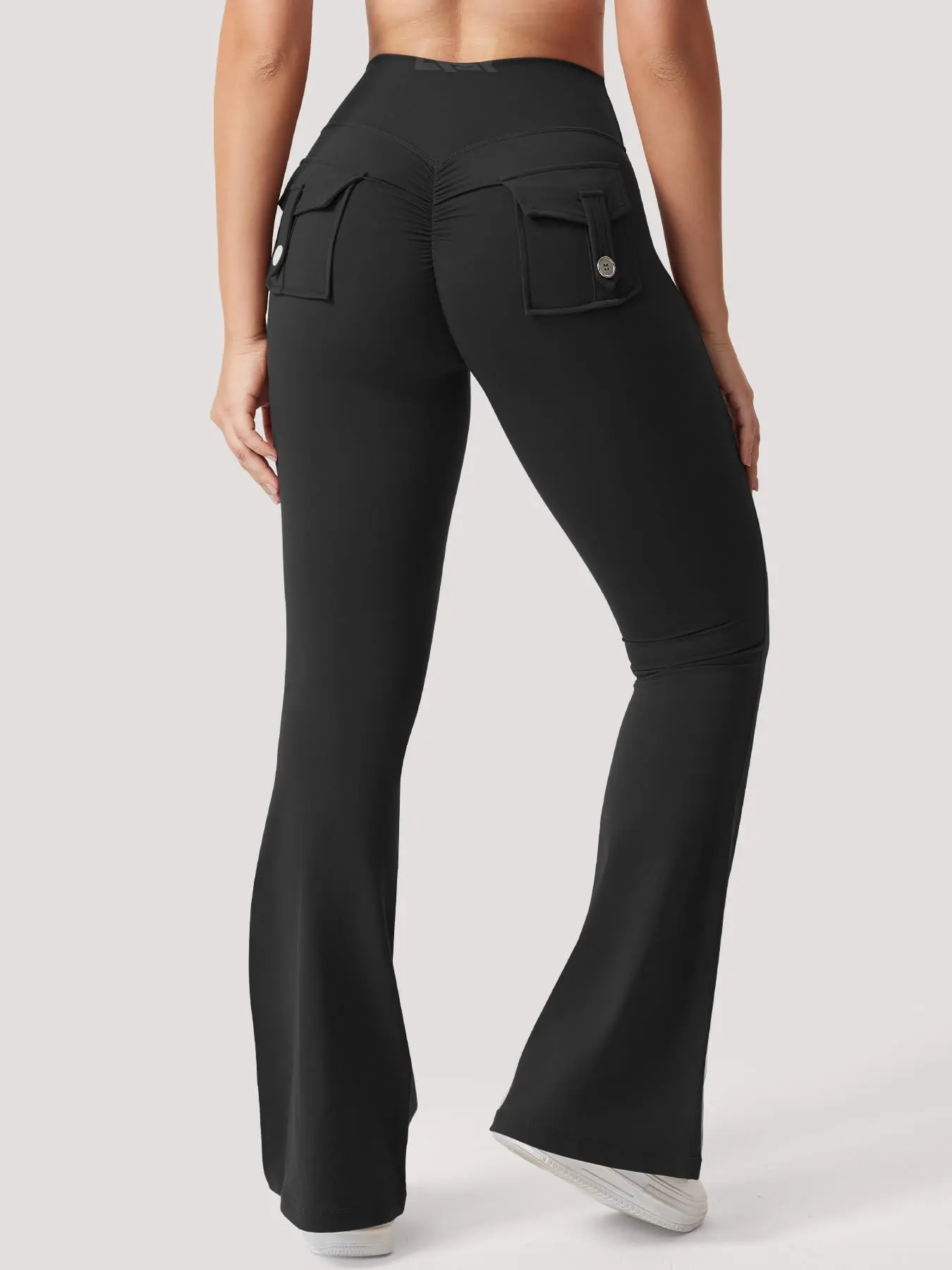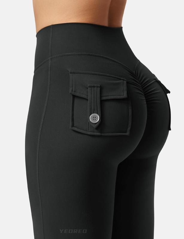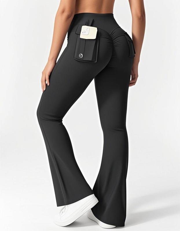 really like these leggings. The fabric is soft, stretchy, and not see-through. They fit well at the waist and the flare cut makes the legs look longer. The pockets are very practical. Comfortable for workouts or everyday wear.
