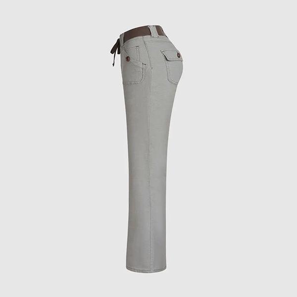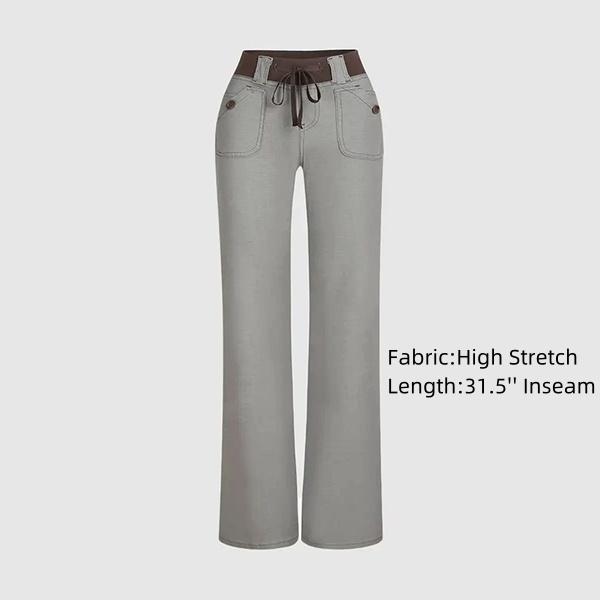 Button Detail Drawstring Low Rise Flare Pants Flared Pocket Comfortable Trouser  Womenswear Bottom