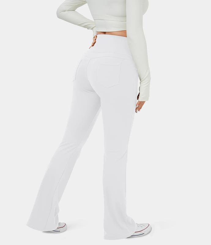 11/10 !!!!! These are sooooo amazing. They’re super comfortable and the material feels really nice and looks super nice. My man instantly was like “we need to order more now!!” These caress my butt and legs like a glove, I’ll definitely be ordering more. And it’s not too much of a flare.