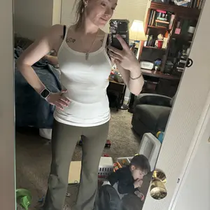 I am obsessed with these yoga pants! I have them in black and I have them in olive and I’m definitely going back to get more!!! I wear them bartending and I also wear to corporate job! You can dress them down or dress up!the back pockets is so convenient! Holds everything do not roll & I’m curvy!