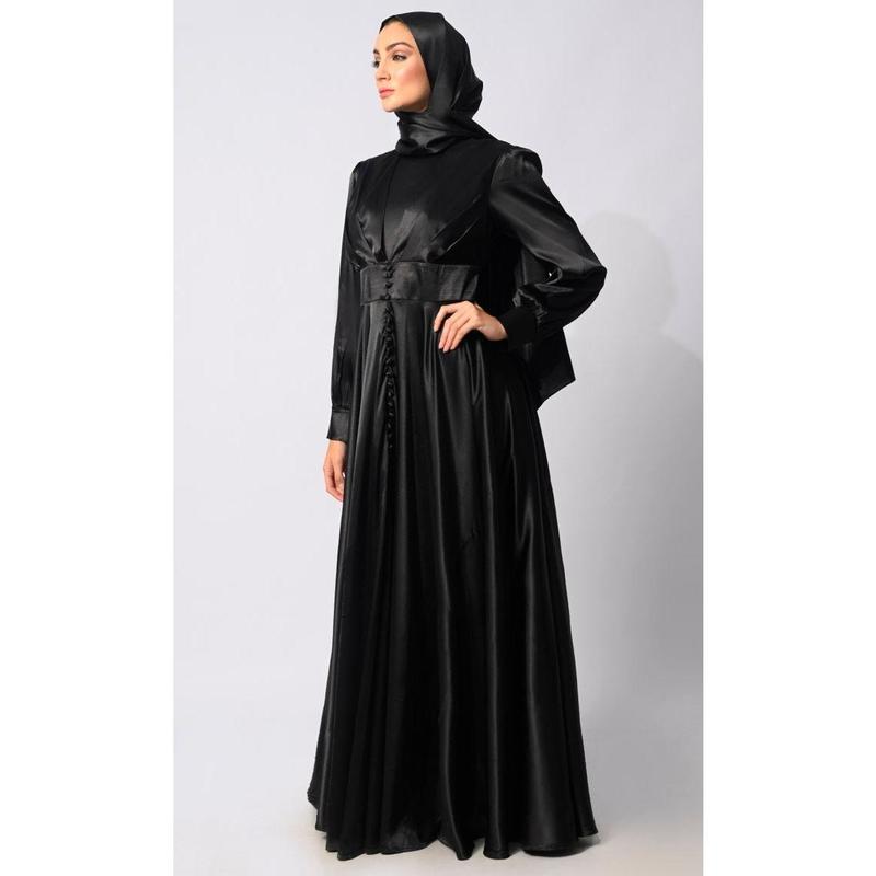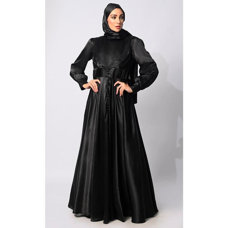Looking for something special to glam you up: our East Essence Exclusively Designed ?Satuin Flared Abaya is the right choice for you. It can be paired well with hijabs, statement belts etc., to enhance your style.