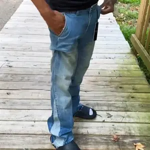 GINGTTO Men's Flared Jeans Bootcut Stacked with Patchwork Design Streetwear