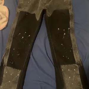 Mens Black Grey Contrast Painted Bell Bottom Jeans