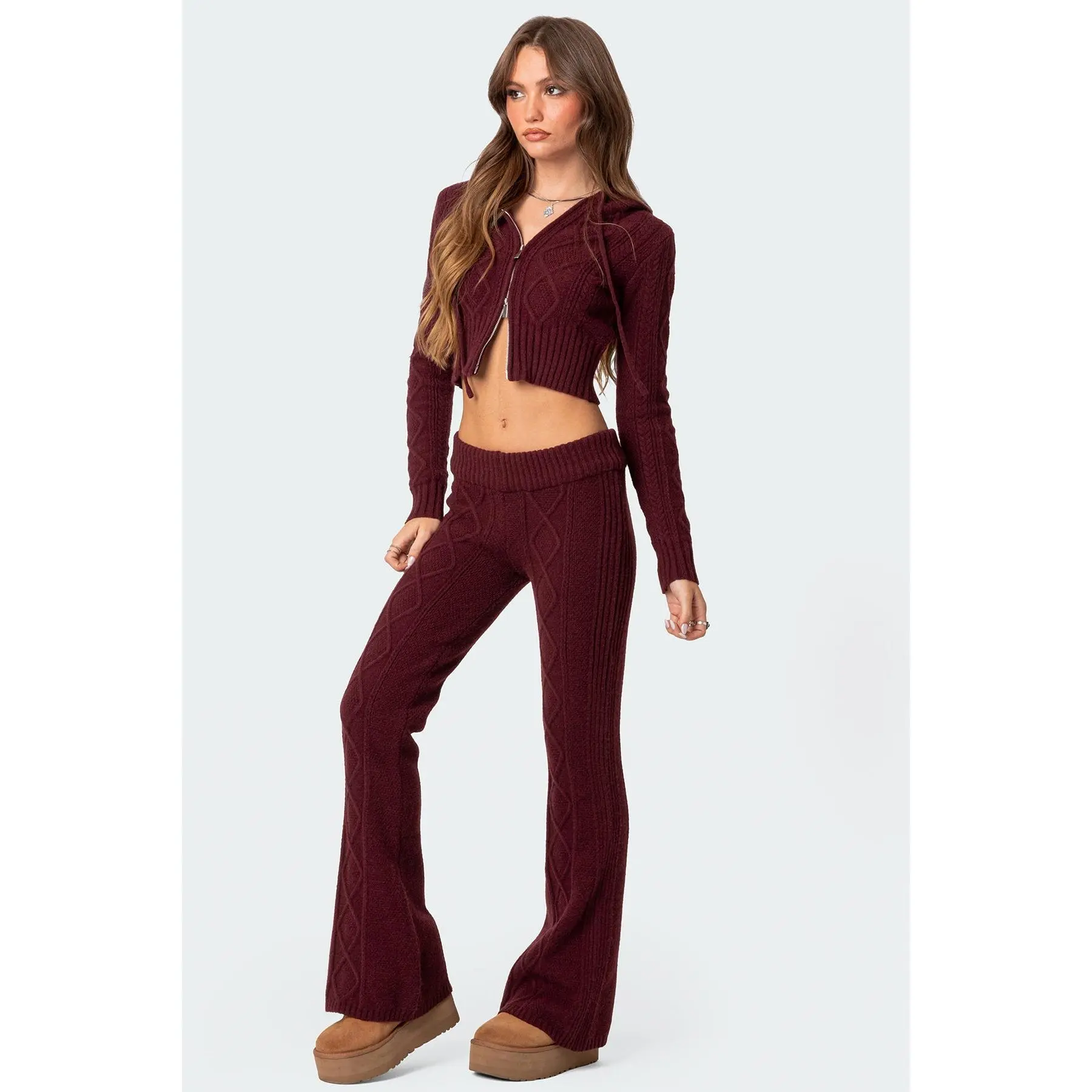 such a flattering matching set!! wearing a medium in the pants! #matchingset #flarepants #knitmatchingset #sweaterset #loungewear