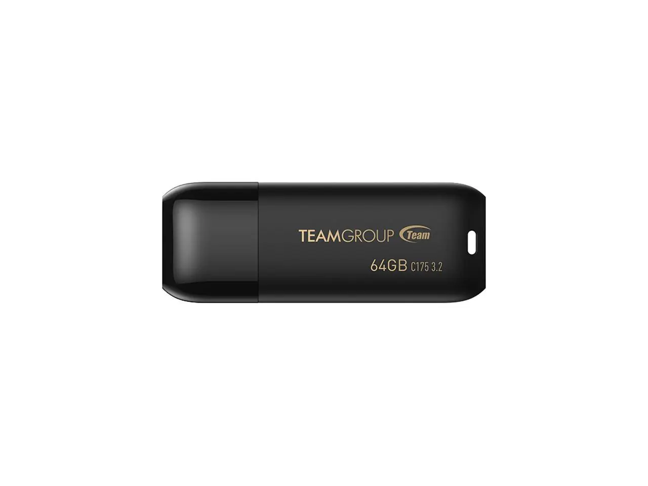 5. TEAMGROUP C175 64GB USB 3.2 Gen 1 Flash Drive Rounded Streamlined Unibody Design Black Pearl Seamless Construction Matte and Glossy Finish, Speed Up to 100MB/s (TC175364GB01)