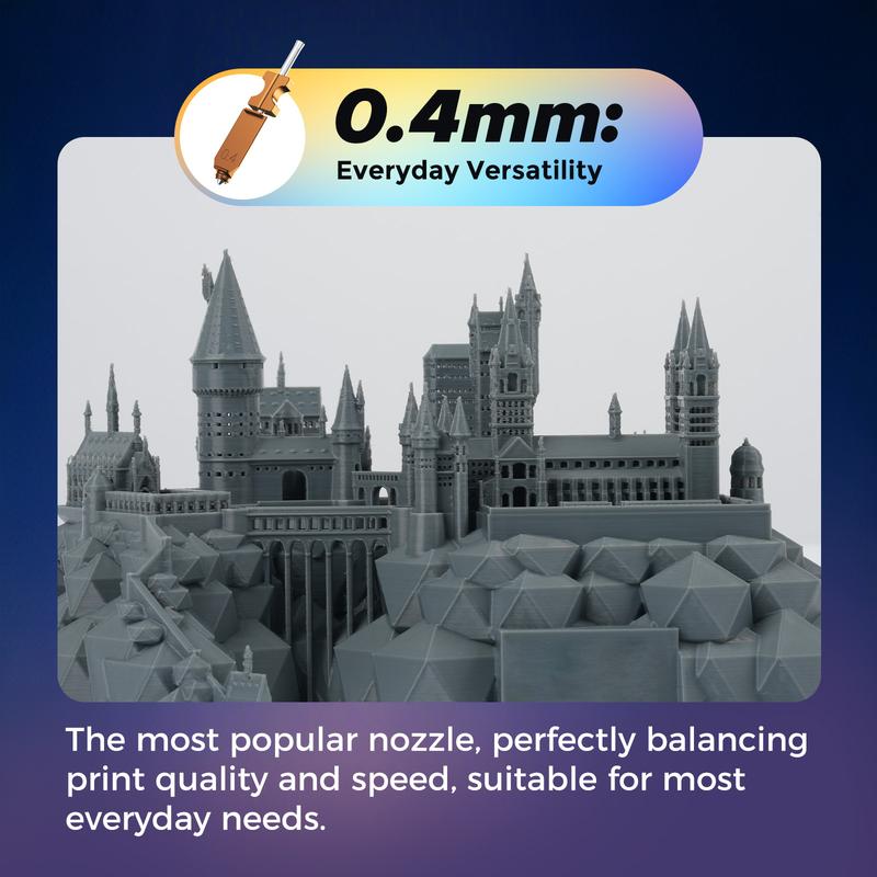 ·Multiple Nozzle Sizes: Available in 0.25 mm, 0.4 mm, 0.6 mm, and 0.8 mm diameters to meet different printing needs, from ultra-fine detail to fast, large-scale models.