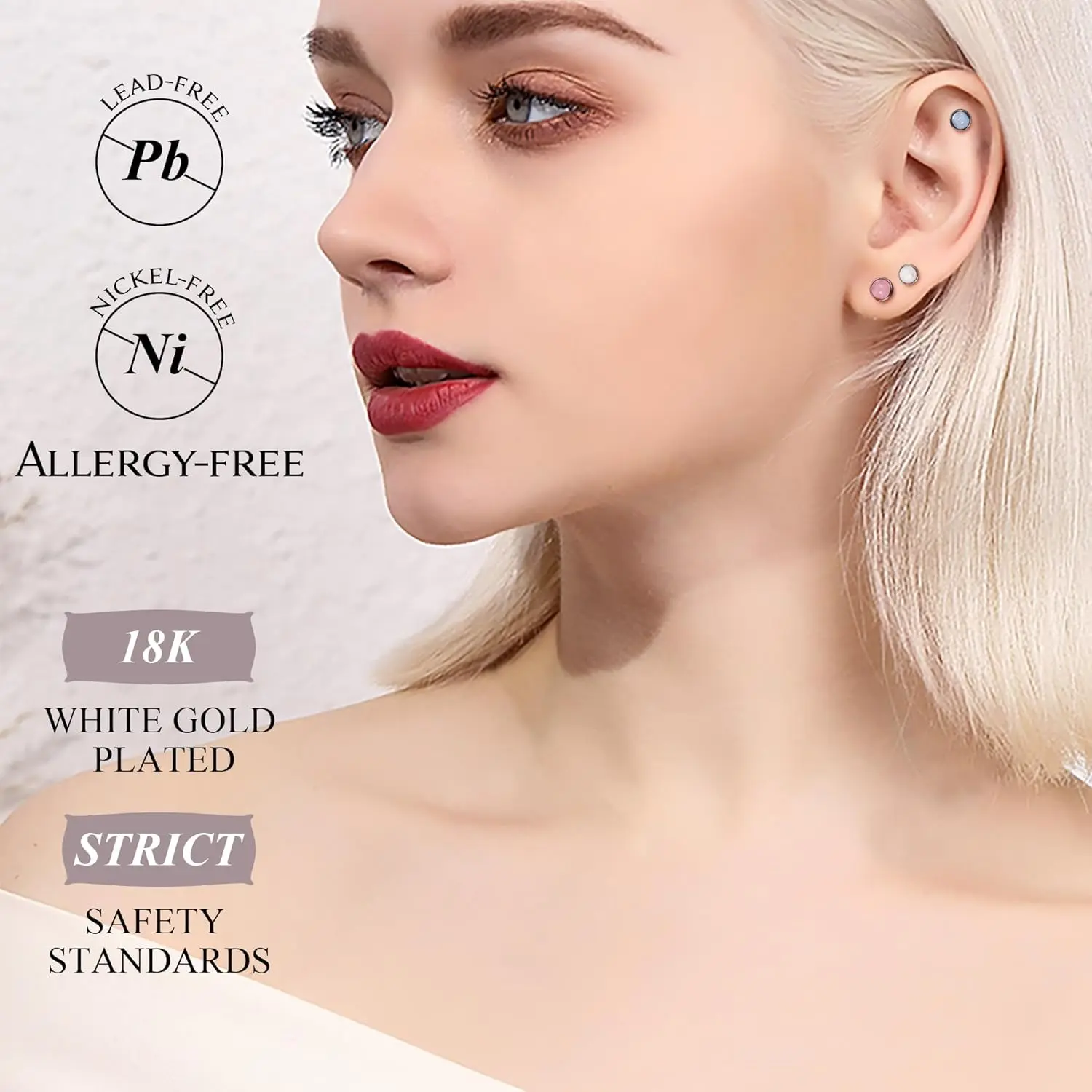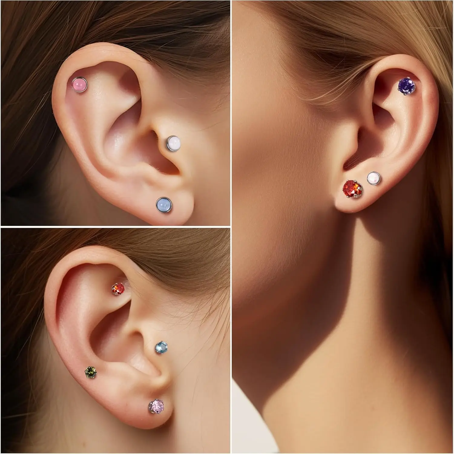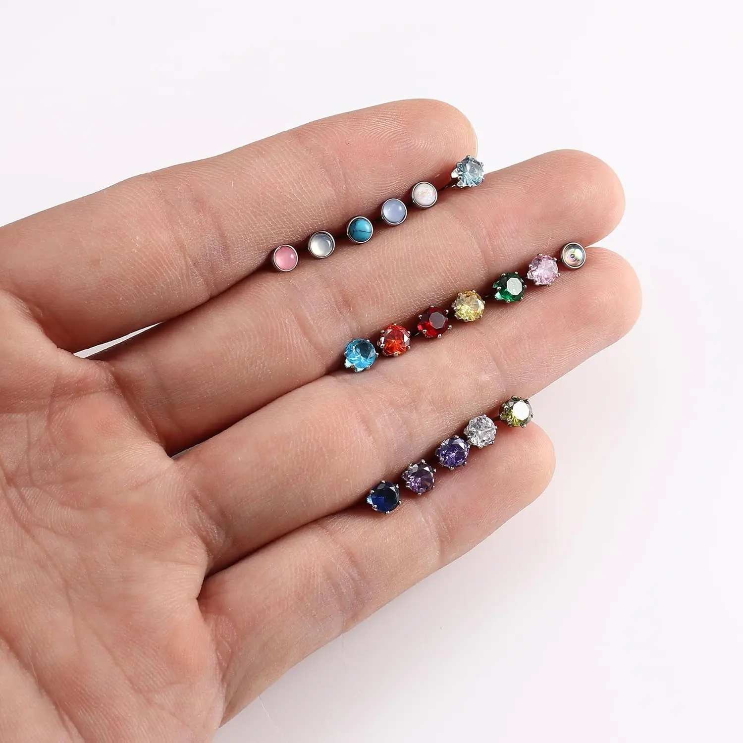 18 Pairs of Flat-Back Earrings:Get 18 pairs of stunning stainless steel CZ stud earrings in various colors and designs, including opal, cubic zirconia, moonstone, turquoise, and birthstone earrings, offering you more daily wear options. AAAAA-grade zirconia diamonds add elegance, perfectly complementing any outfit!