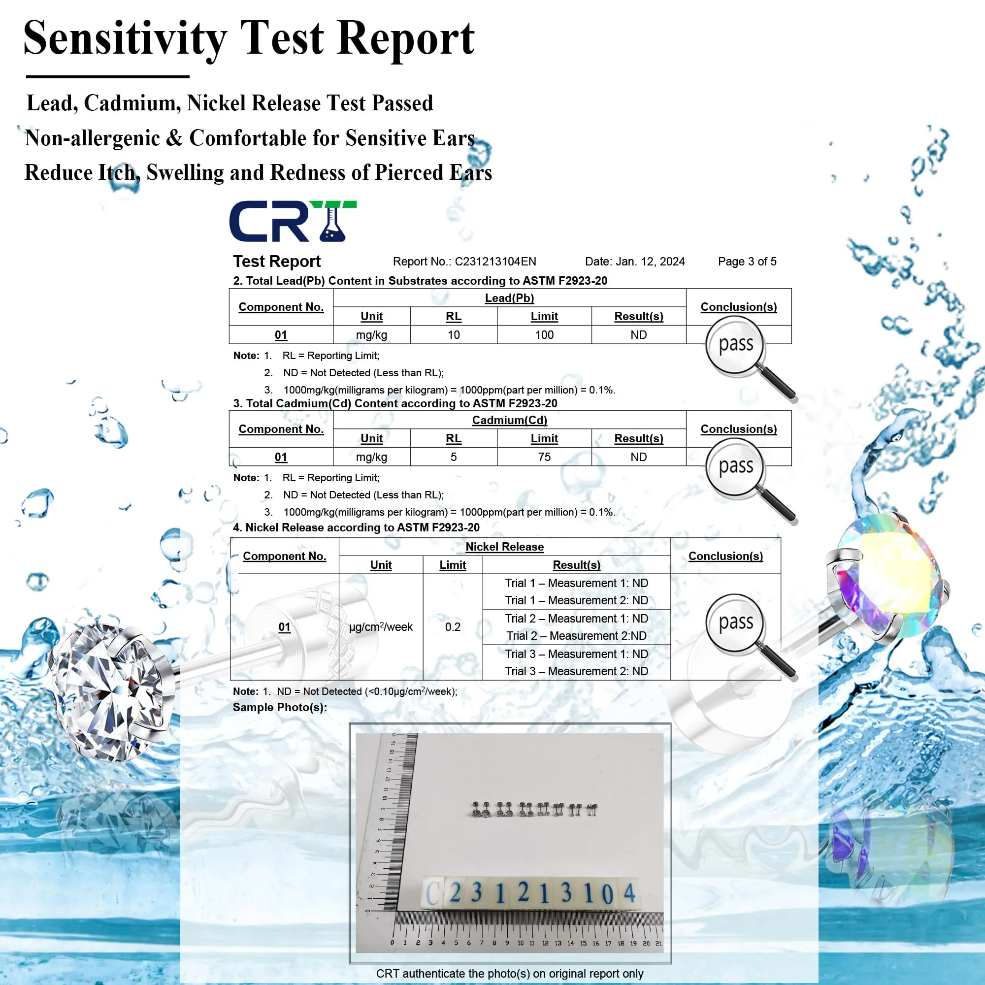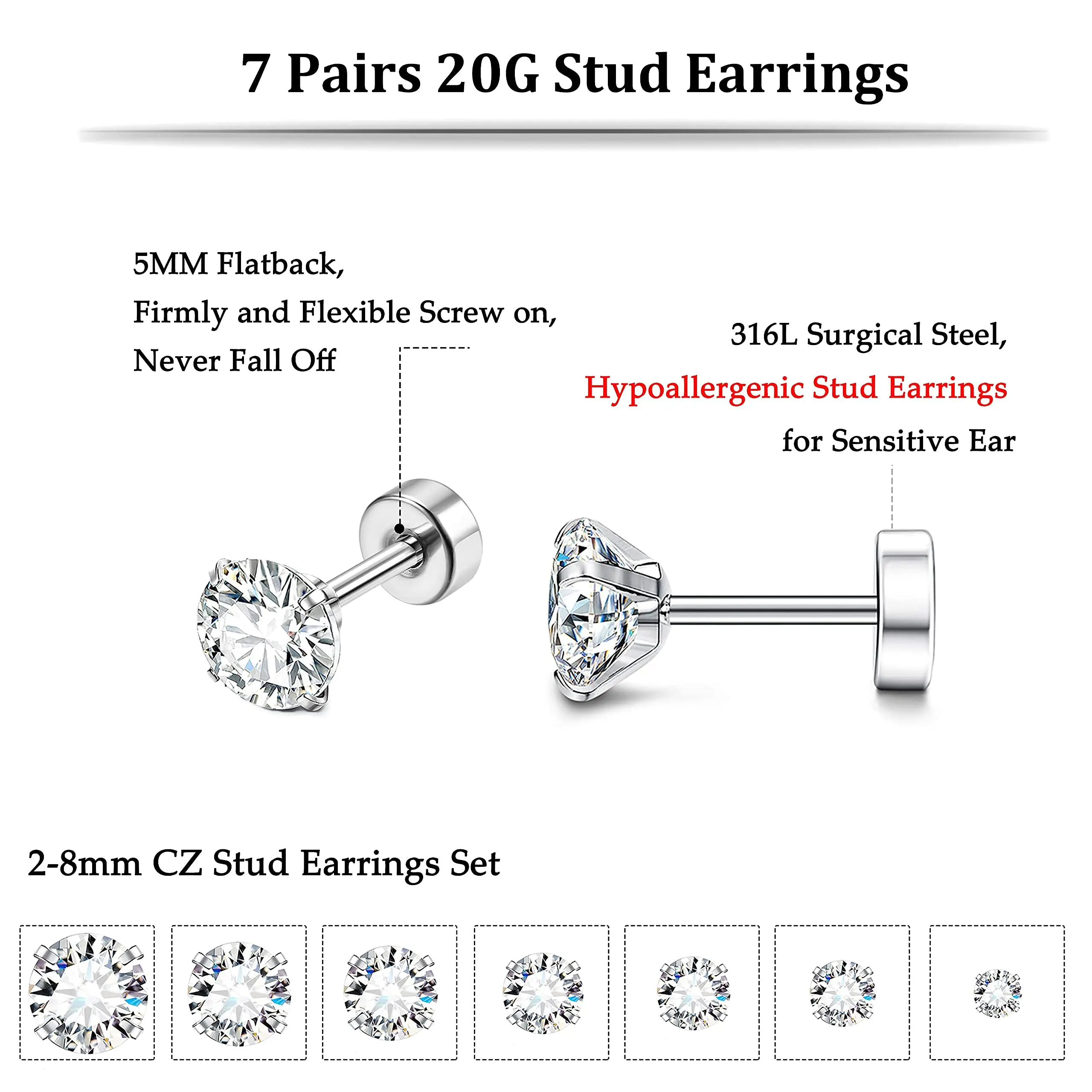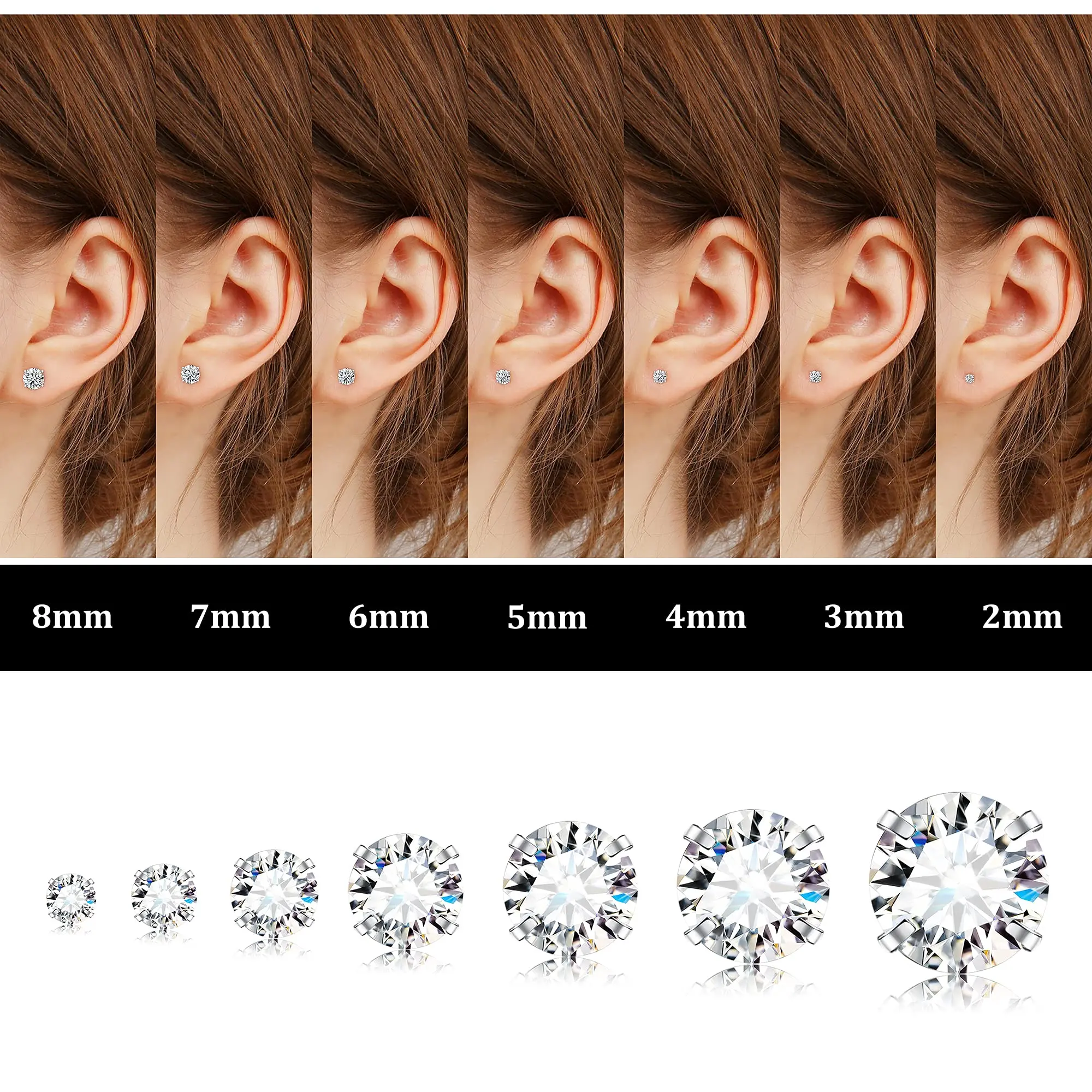 C. 6Pairs Tiny Earrings, 2mm 3mm