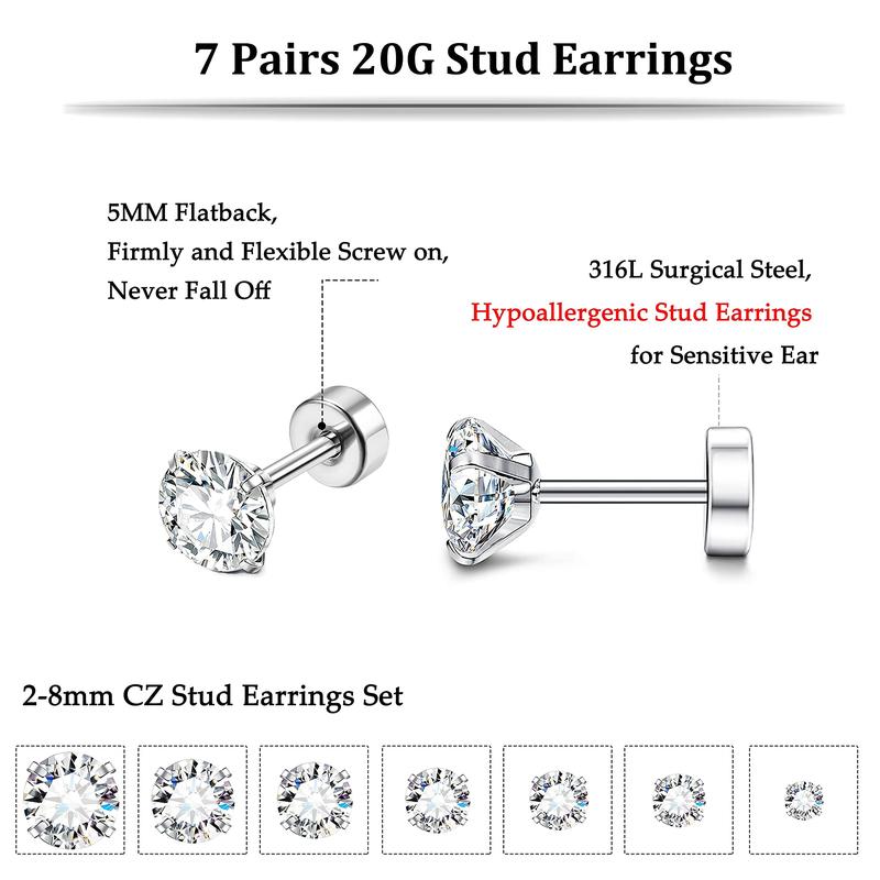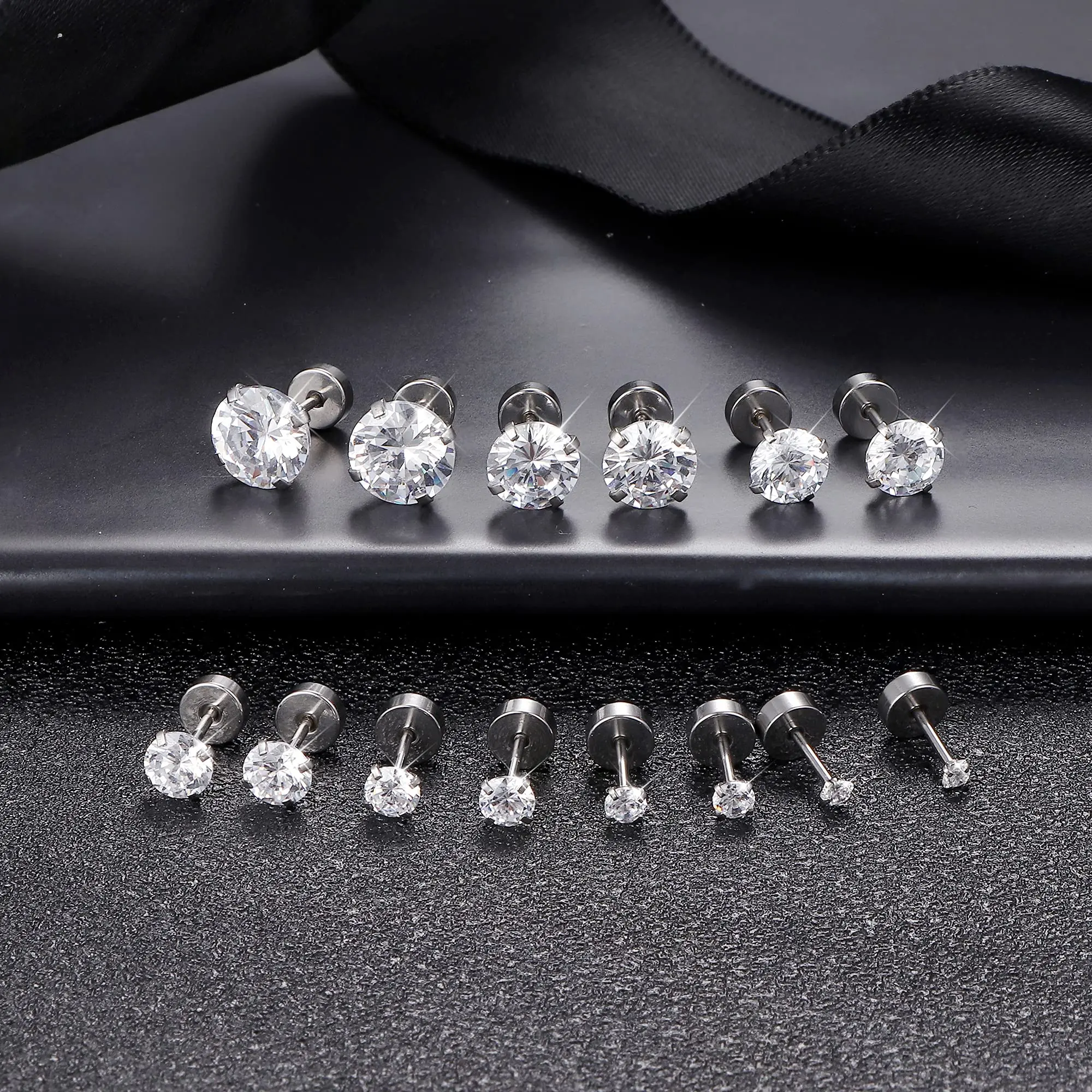 H. 7Pairs, 2-8MM Black CZ