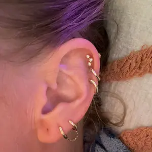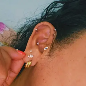 Perfect dainty earring. Fits cartilage perfectly! Screw on back makes it comfortable to sleep on that’s side.