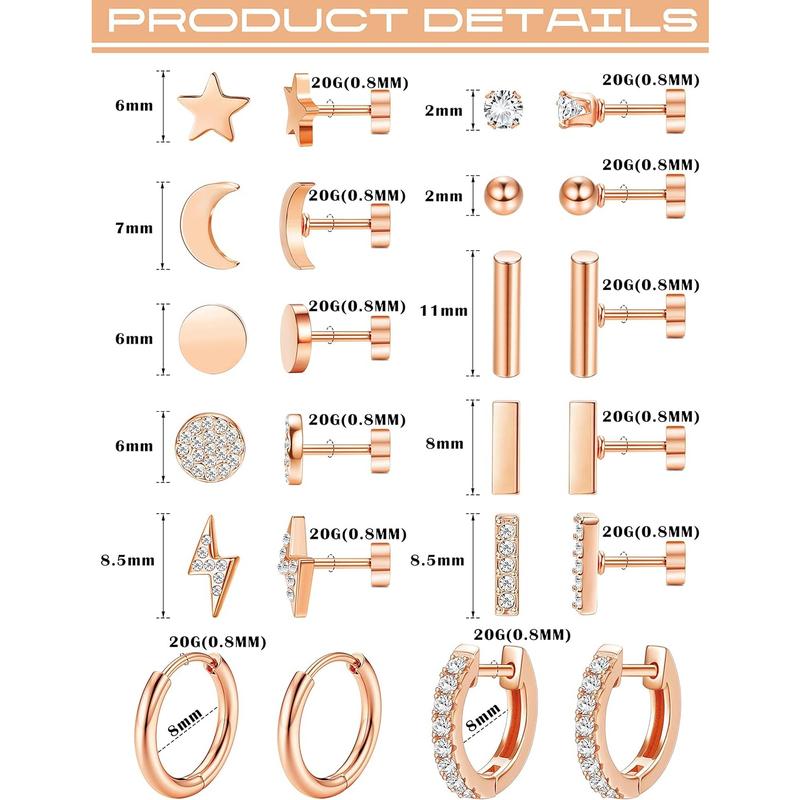 FASACCO 12Pairs Flat Back Earrings for Women Men Plated Stainless Steel Flatback Stud Small Huggie Hoop Earrings 20G Tiny Stud Earring Jewelry CharmsFASACCO 12Pairs Flat Back Earrings for Women Men Plated Stainless Steel Flatback Stud Small Huggie Hoop Earrings 20G Tiny Stud Earring Jewelry Charms