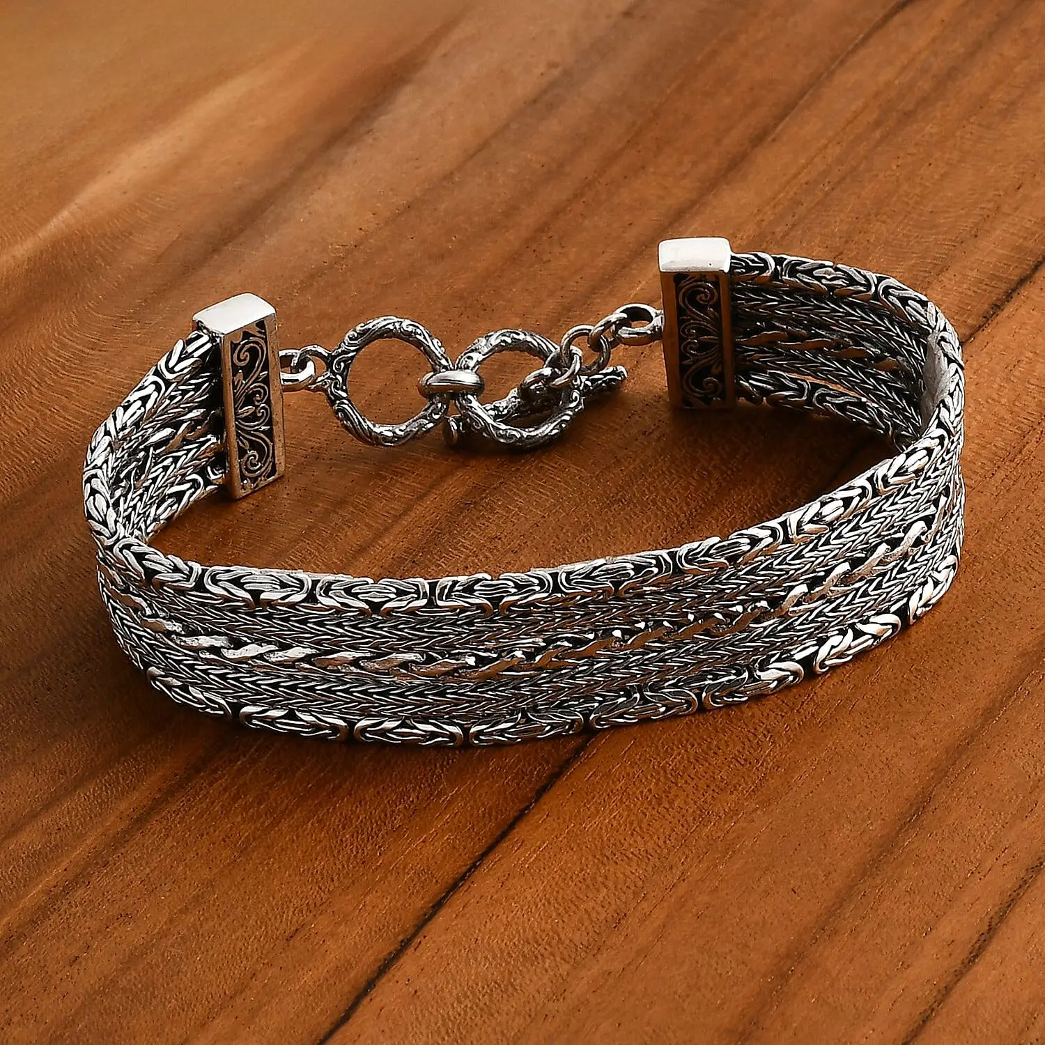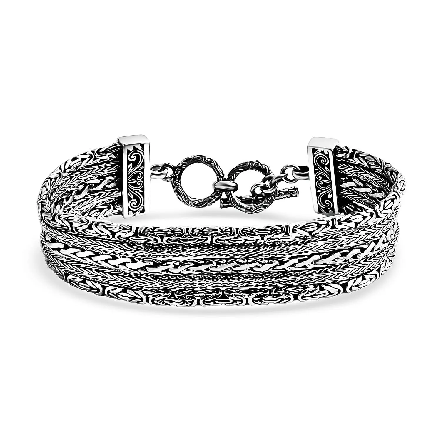 Tulang Naga Borobudur and Padian Weaves Flat Chain Bracelet in Sterling Silver 7.258.0In 34.10 Grams Christmas Gifts