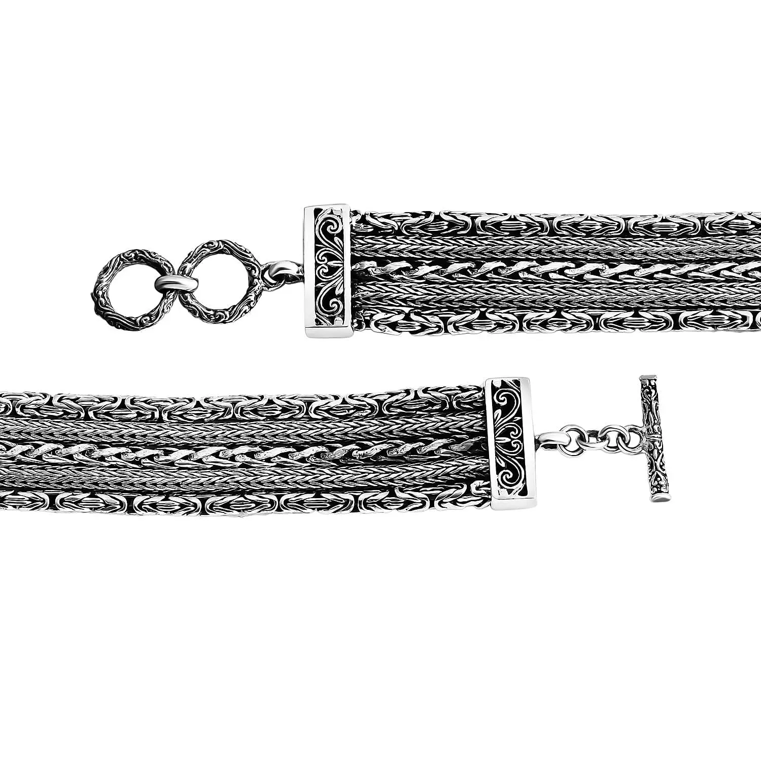 Upgrade your style with this Bali Legacy flat chain bracelet in 925 sterling silver. This elegant sterling silver bracelet for women features a bold flat chain design crafted with artisanal precision. Perfect for adding timeless charm and everyday sophistication to your jewelry collection.Details | Distinctive flat chain design with Balinese artistry | wear with 925 sterling silver | Elegant appeal with intricate metalwork | Versatile styling with an adjustable length | Easy on and off with a toggle clasp closure | Ideal for both daily and occasional wear