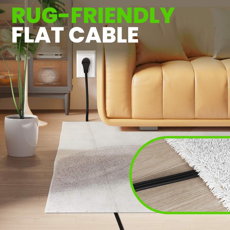 ·MULTIPLE OUTLETS - Power up to three devices simultaneously with our 3 outlet extension cord flat plug, offering unmatched convenience and efficiency in any setting. Perfect for home offices, entertainment systems, and more.