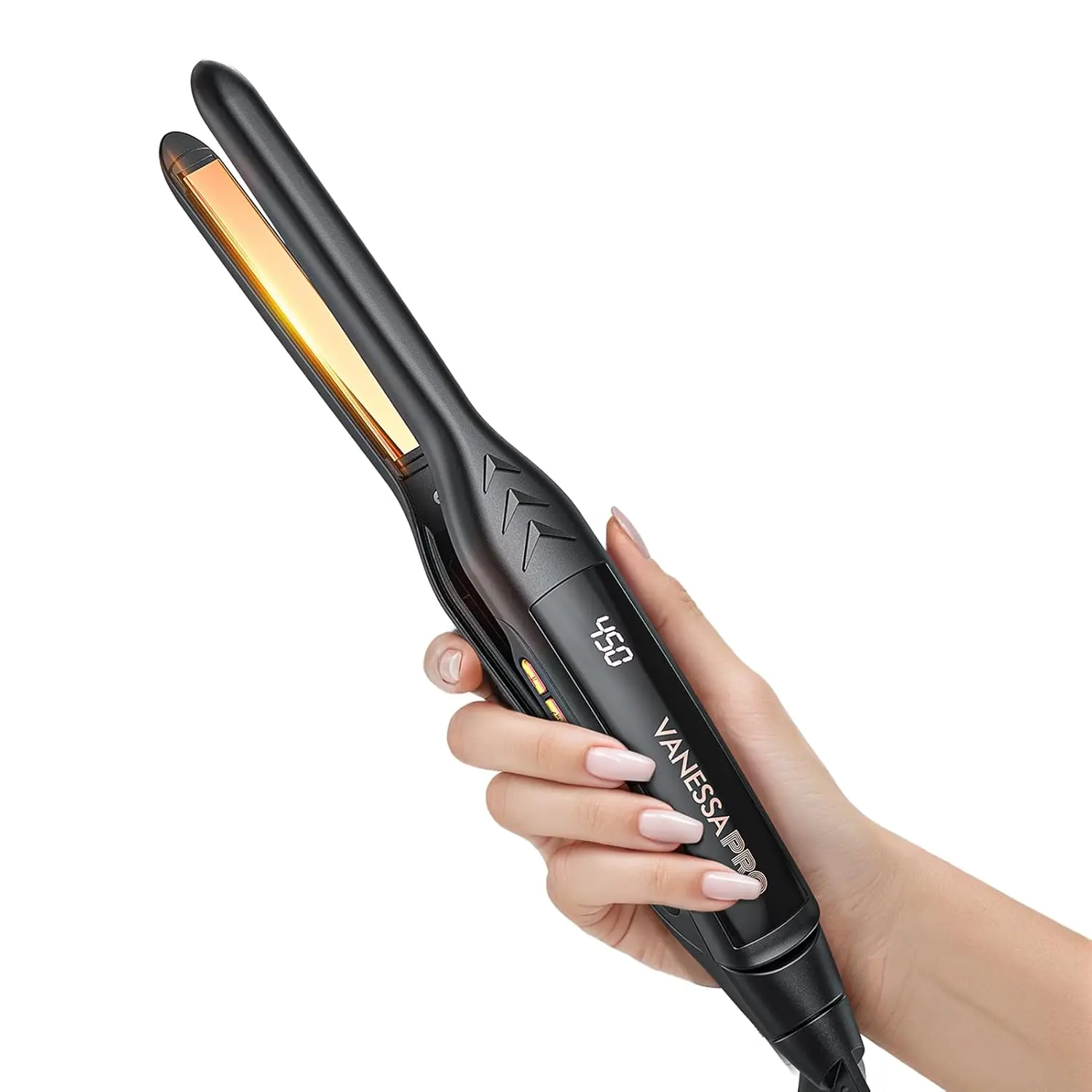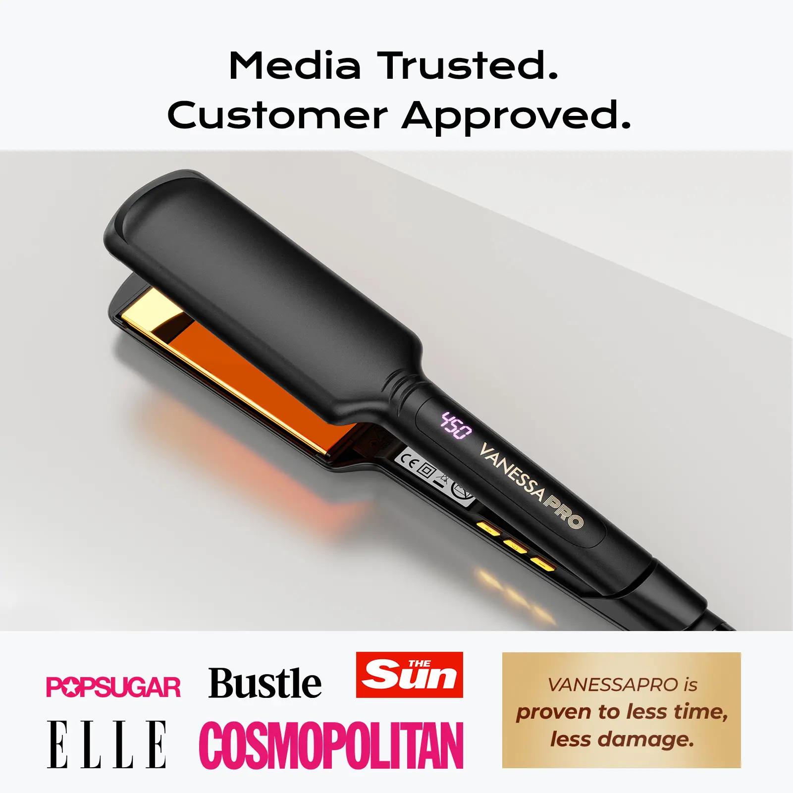 Real review Omggg I’m amazed at how awesome this flat iron is. Heats up to 450 like the real 450 I use it on my clients everyday.