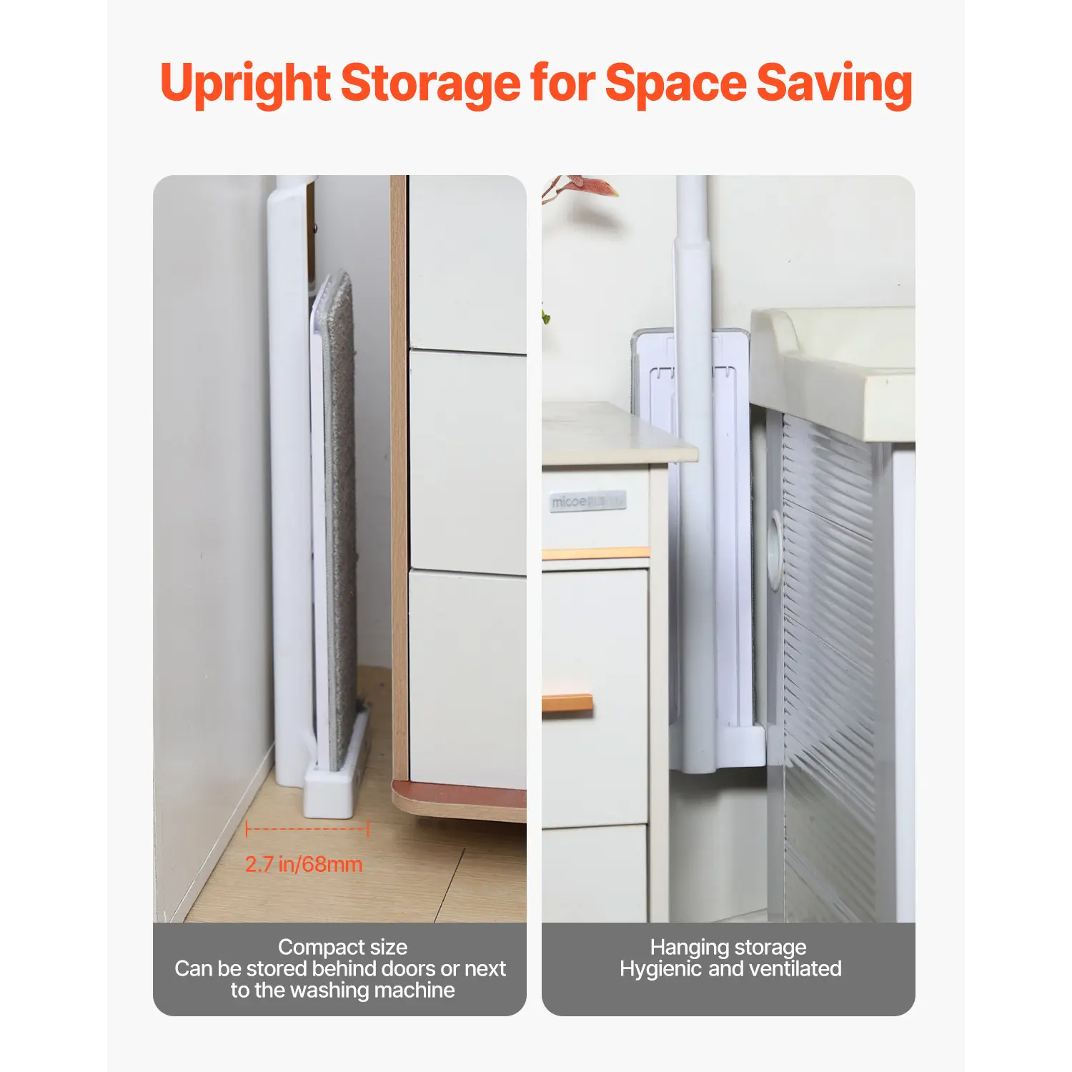 • Easy to Use: The mop head rotates 360°, allowing you to clean hard-to-reach areas like under beds, sofas, narrow corners, and gaps. After cleaning, the upright design makes the microfiber mop easy to store in corners or hang on the wall without taking up too much space.