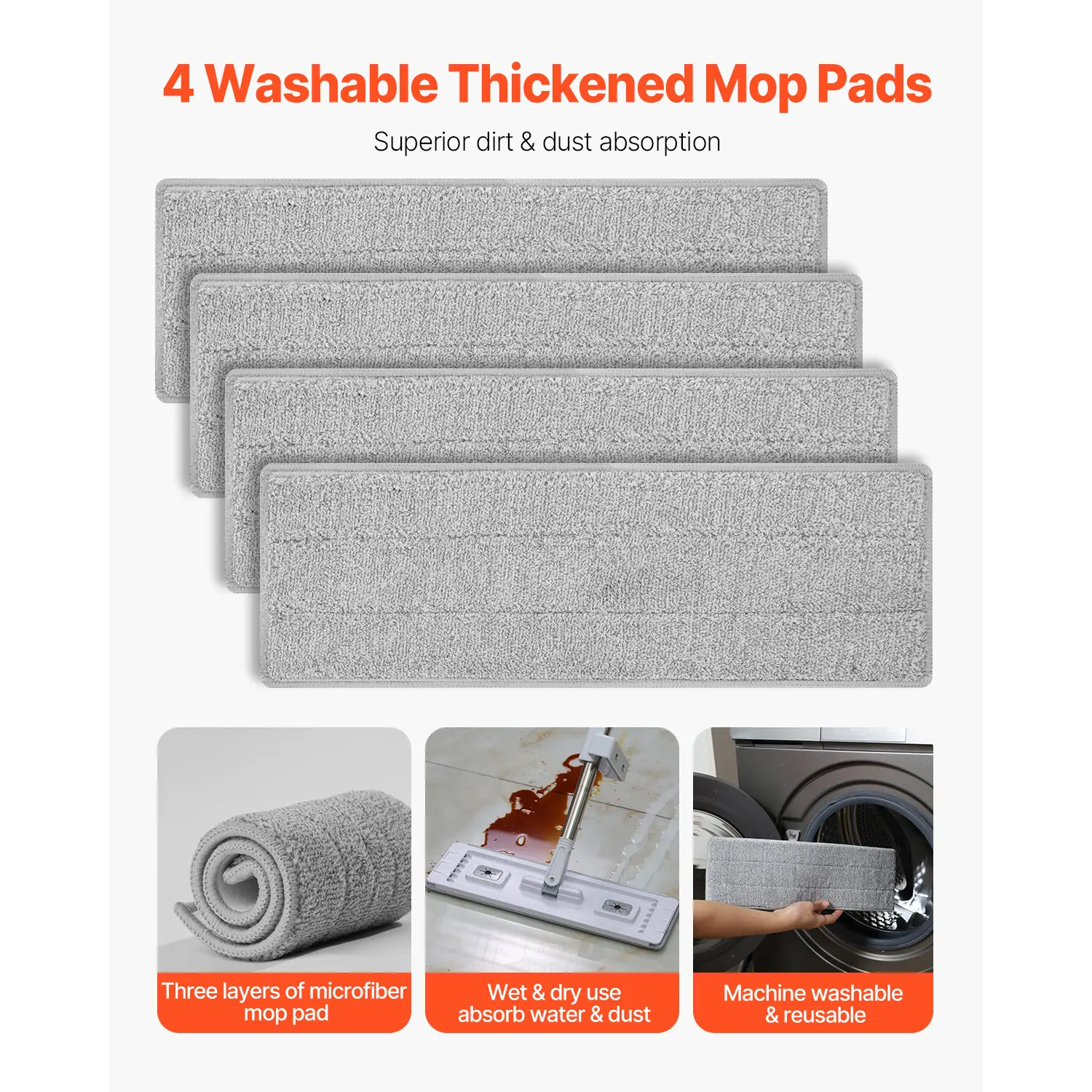 • 4 Washable Mop Pads: Our microfiber floor mop includes 4 replaceable mop pads made of advanced microfiber material. These pads provide excellent absorbency and stain removal power, and they are washable and reusable, greatly reducing cleaning costs.