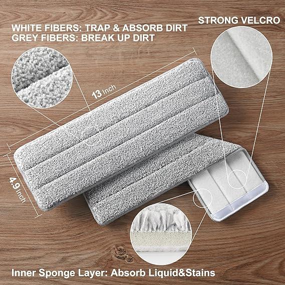 ·[Premium Fiber] A grey pad is attached on the head, great on picking up dirt and absorbing water than cotton or disposable spray mop refills.