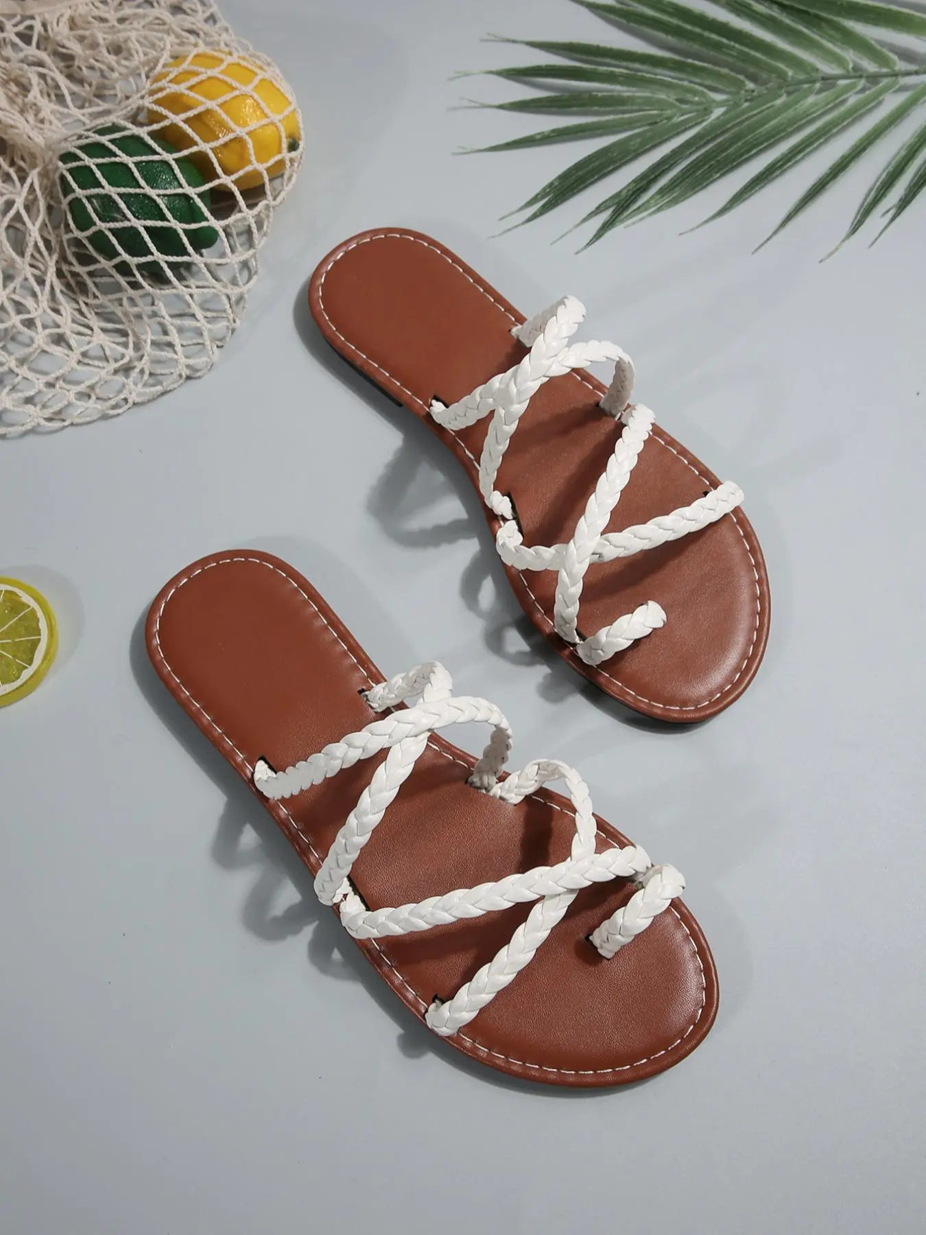 Women's Fashionable Boho Style Braided Design Flat Sandals, Casual Trendy Sandals, Fashionable Shoes for Daily Wear