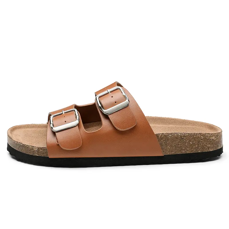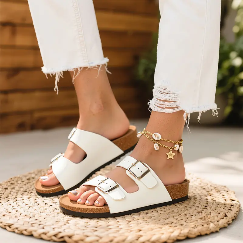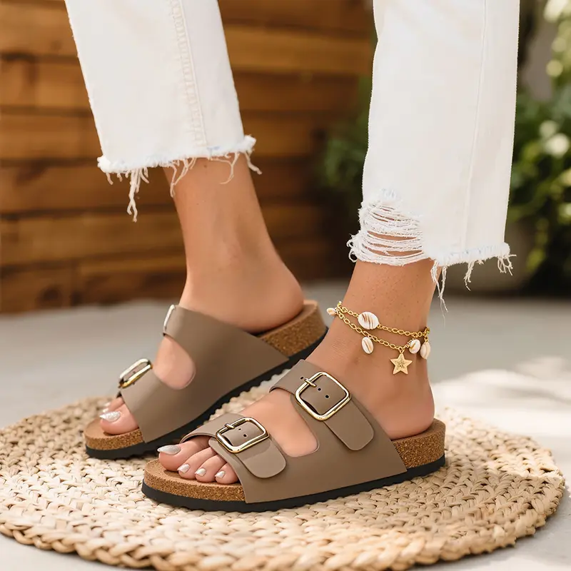 Trary Women's Flat Cork Footbed Sandals, Women Slide Sandals, Adjustable Buckle Slip-On Open Toe Slippers Spring Summer Size 6-11, Dealsforyoudays