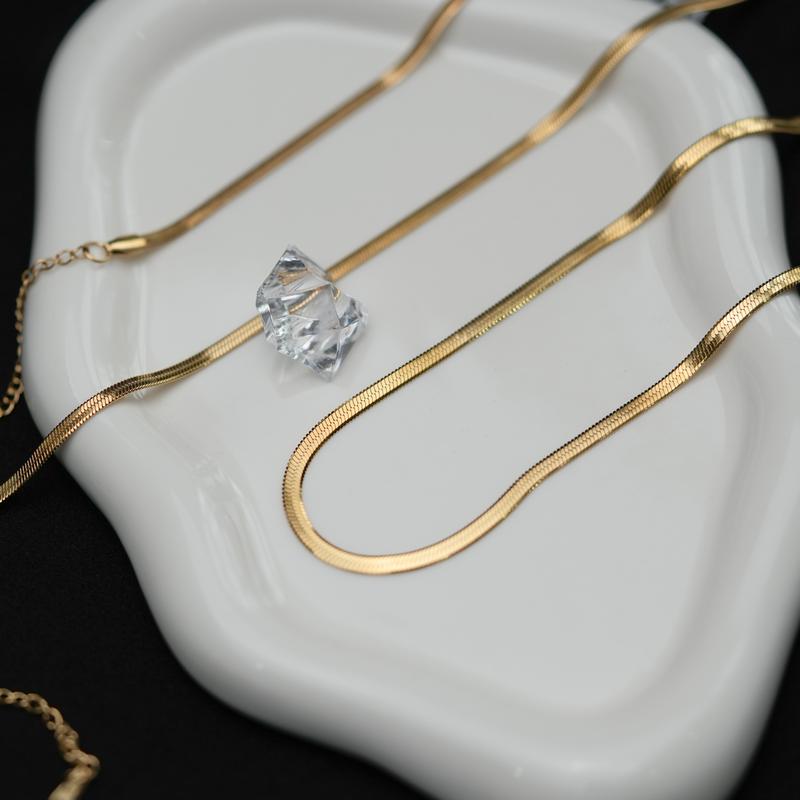 ·Elegant Design: This 14K gold plated necklace features a minimalist 3MM flat snake bone chain. Perfect for both men and women, it offers a vintage aesthetic. The flexible herringbone design ensures comfort and style.