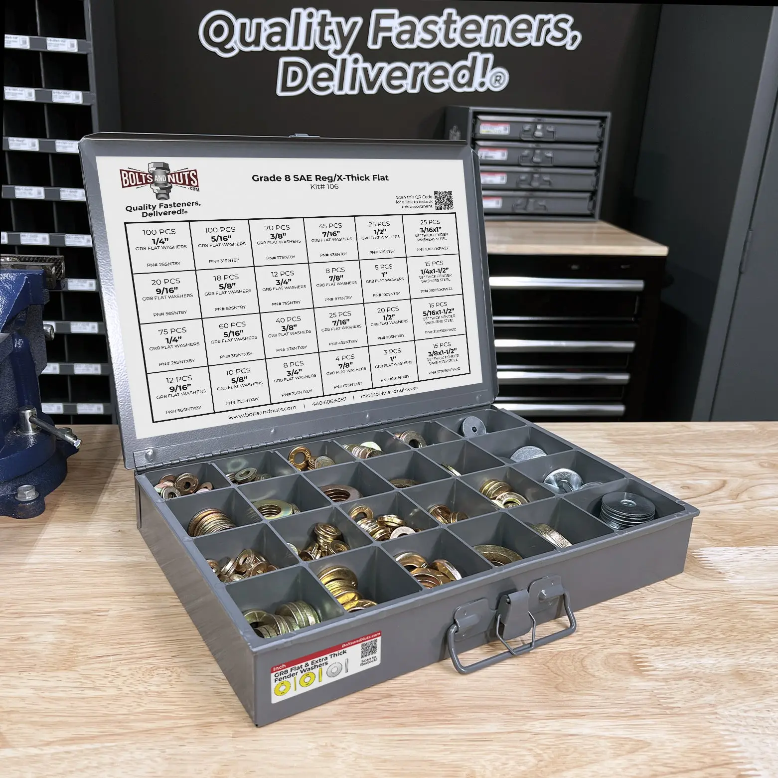 Tired of digging for washers? Our 731 piece SAE flat and extra thick fender washer kit has every size you need!  #tools #automotive #diy #build #mechanic