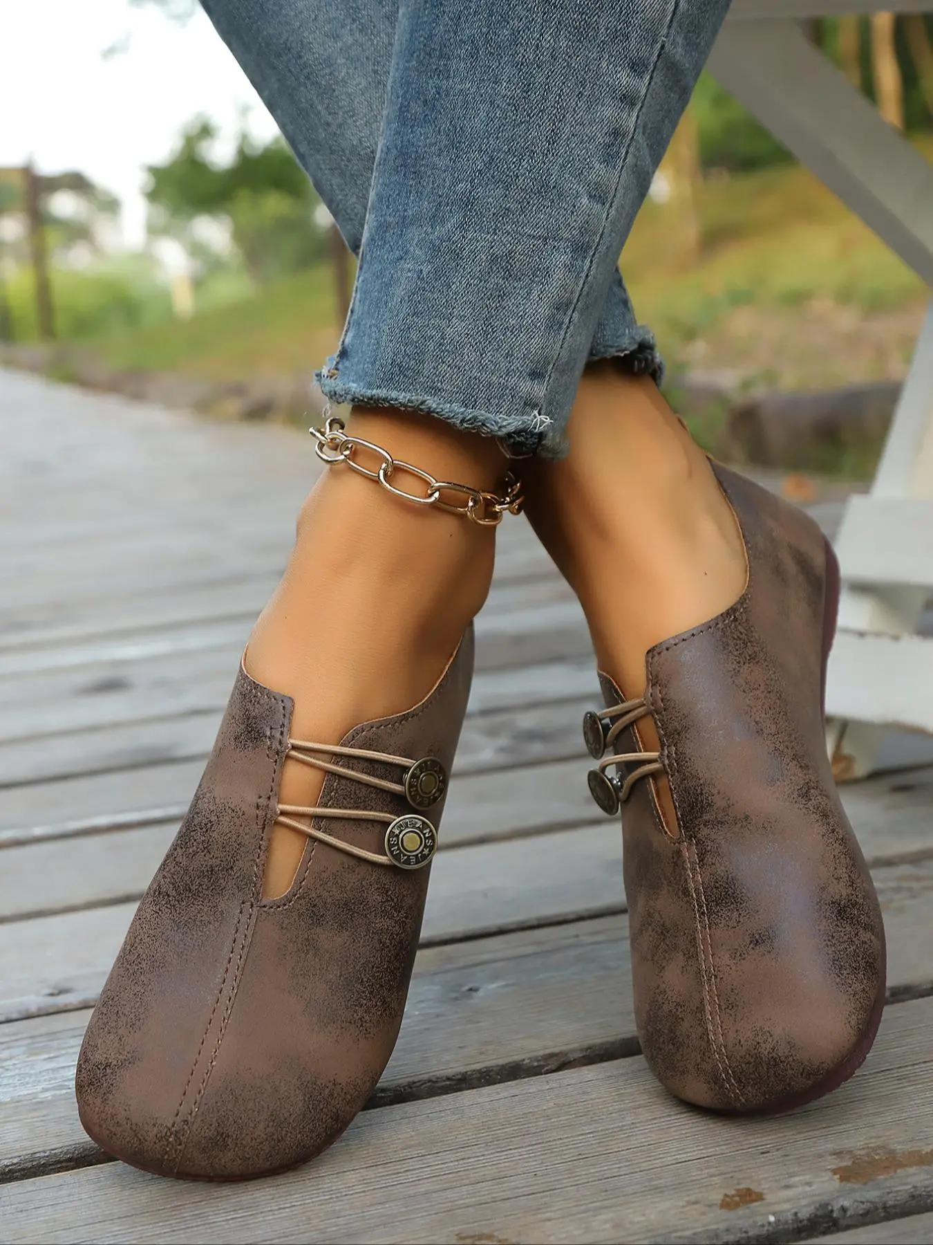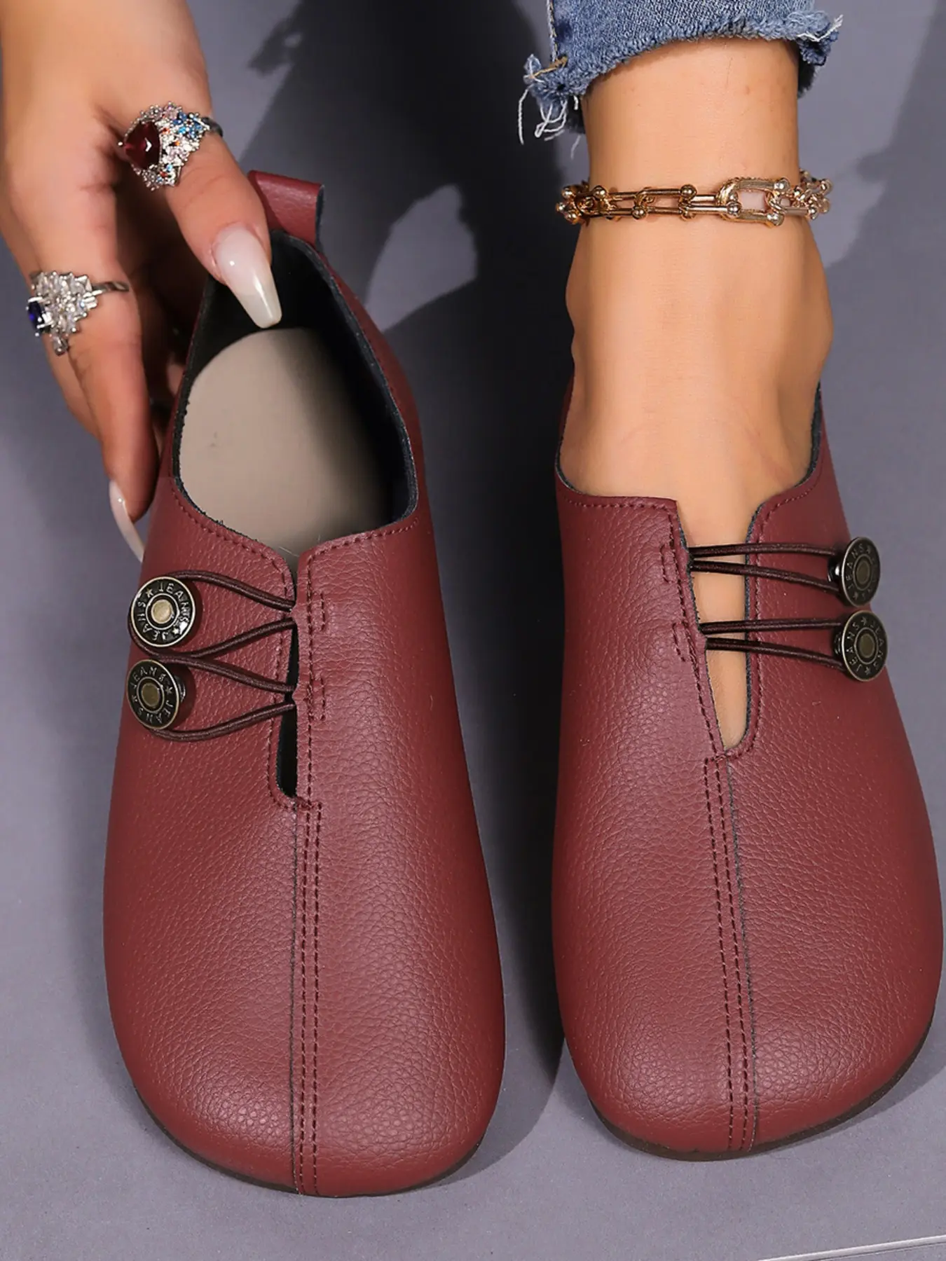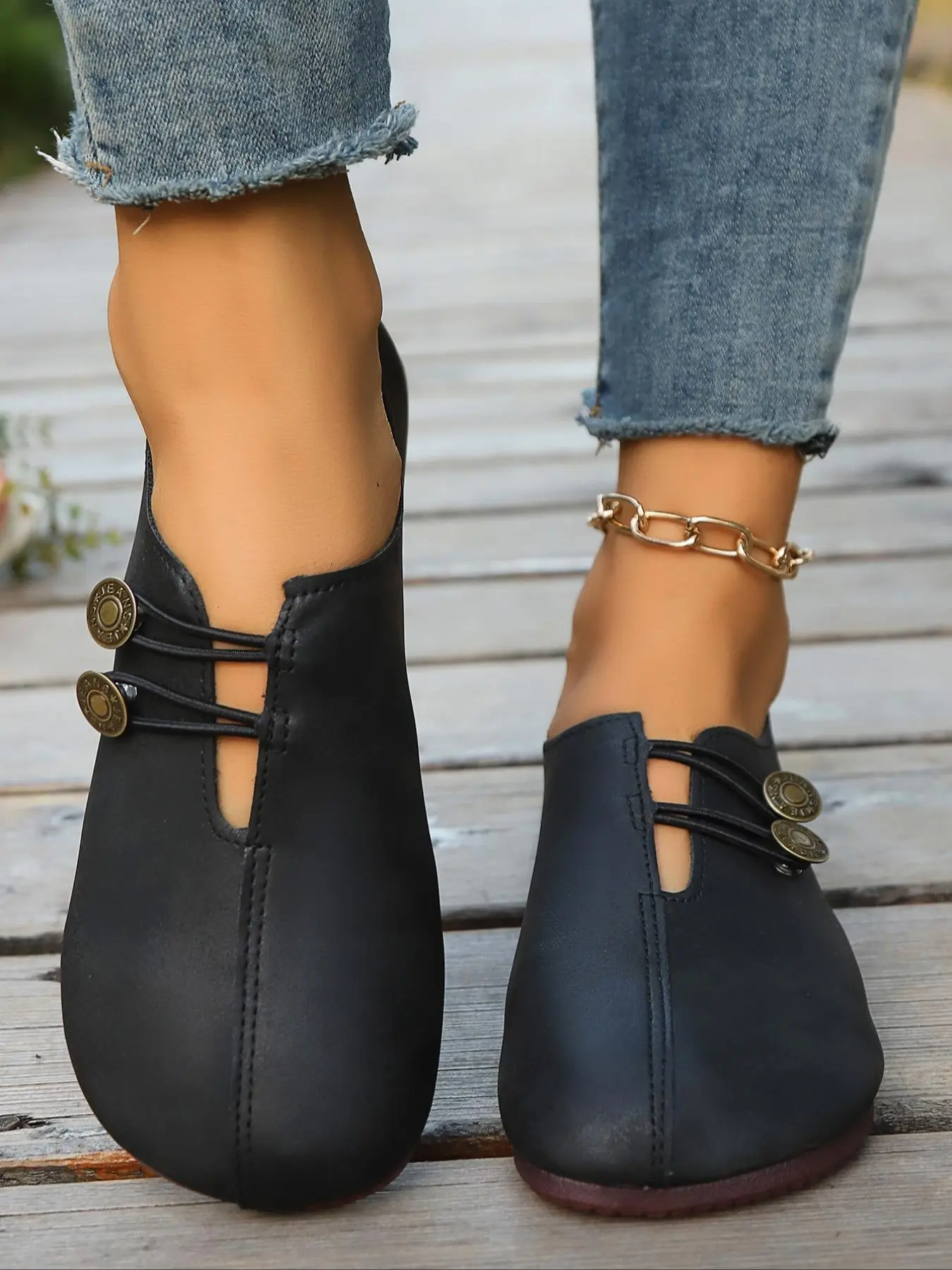 **could Give it NO STARS**I fell In love with these shoes when I saw them. Felt like silky leather. THEN not 2 hours out the box the rubber string broke from around the button. IVE MESSAGED over and over about a replacement. CRICKETS. 🦗 I dont Want to return them without getting another pair. HELP!