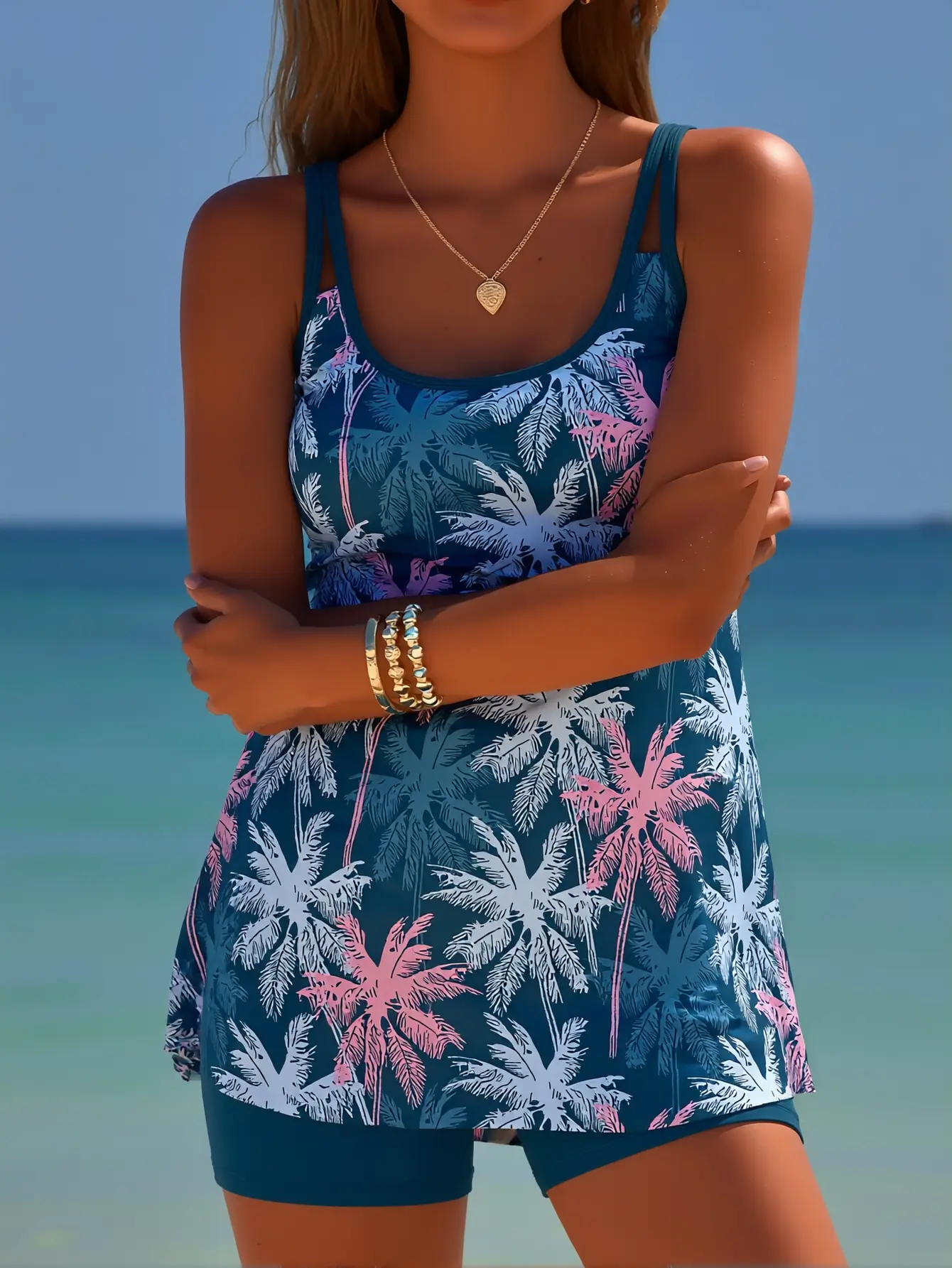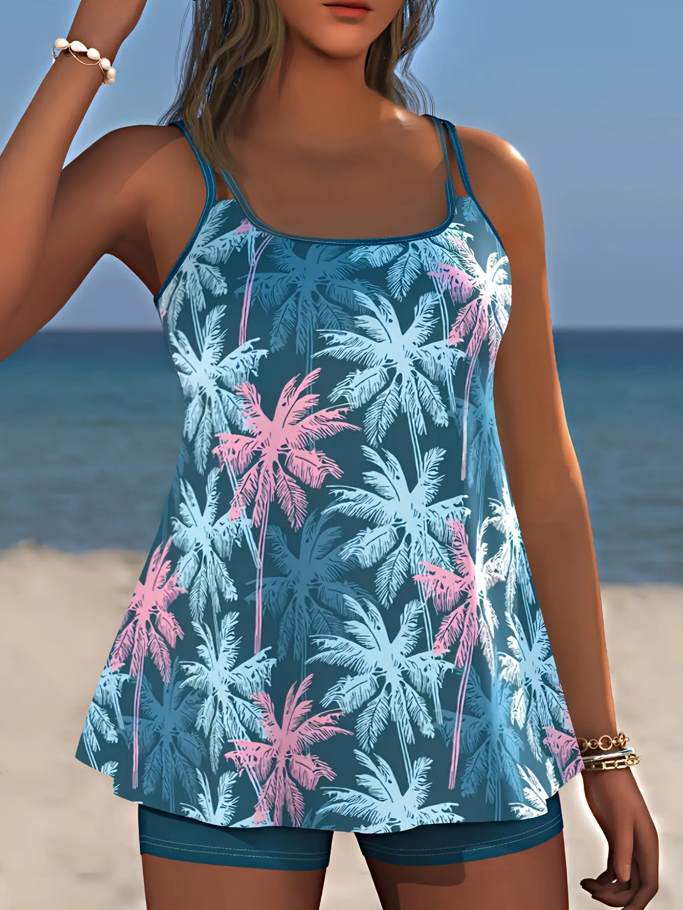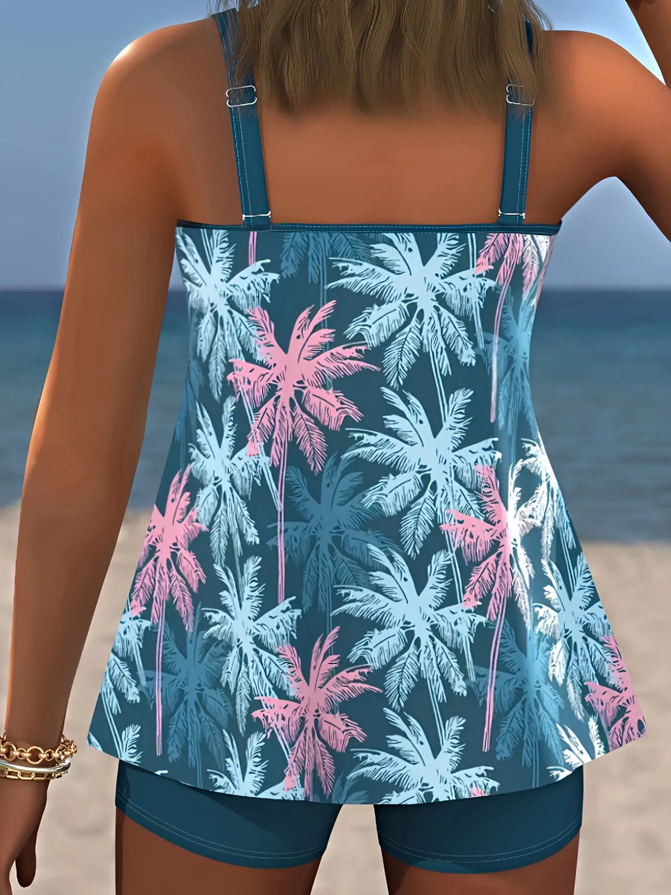 Tired of swimsuits that make you hold your breath?This palm-print tankini is designed to smooth your tummy, support your bust, and let you move freely—whether you’re doing beach yoga, chasing the kids by the pool, or sipping cocktails on vacation.It’s the confidence-boosting solution for anyone who wants swimsuits that hide tummy while looking effortlessly stylish.