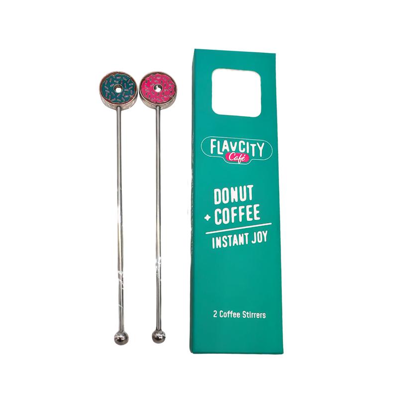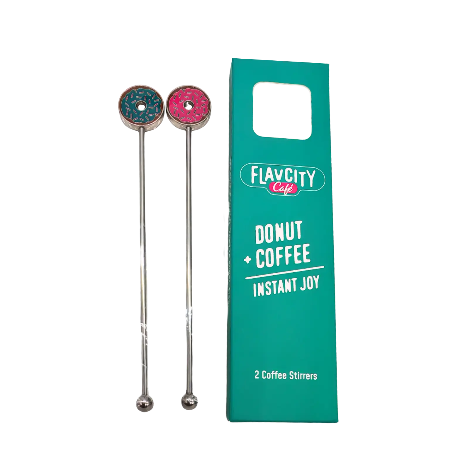 🍩 FlavCity Café Donut Coffee Stirrer - Reusable Coffee Tools for Effortless Mixing - 2 Pack of Durable Utensils
