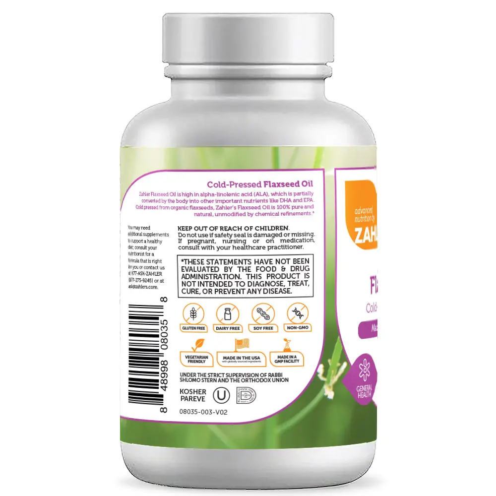 - 1000mg of cold-pressed organic flaxseed oil per serving.