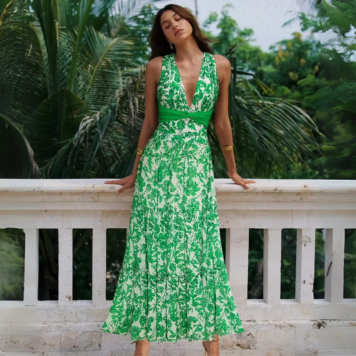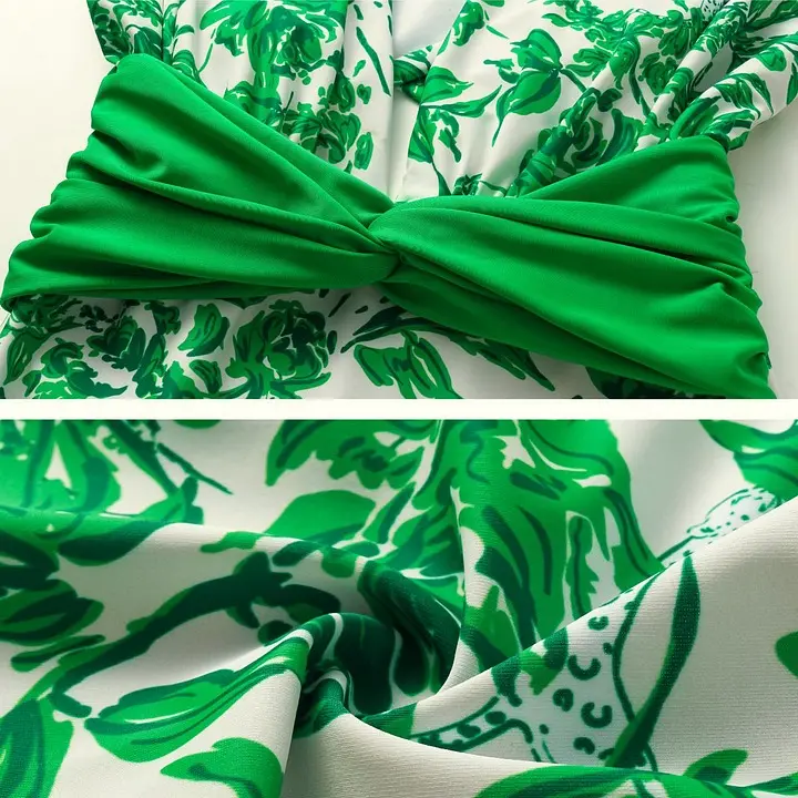 5. FLAXMAKER Women's Convertible Strap V Neck Tummy Control Green Print One Piece Swimsuit and Matching Skirt Set V-Neck Swimdress Swimwear Bathing Suit Stylish Beachwear #TikTokShopBlackFriday Tankini Tops