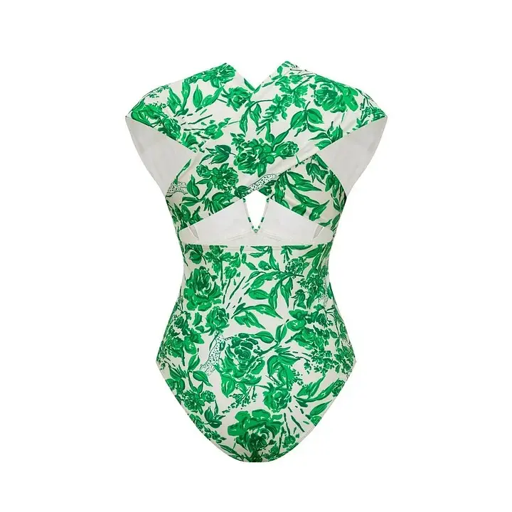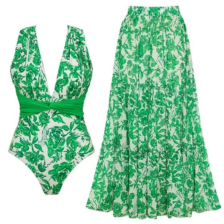 FLAXMAKER Women's Convertible Strap V Neck Tummy Control Green Print One Piece Swimsuit and Matching Skirt Set V-Neck Swimdress Swimwear Bathing Suit Stylish Beachwear #TikTokShopBlackFriday Tankini Tops