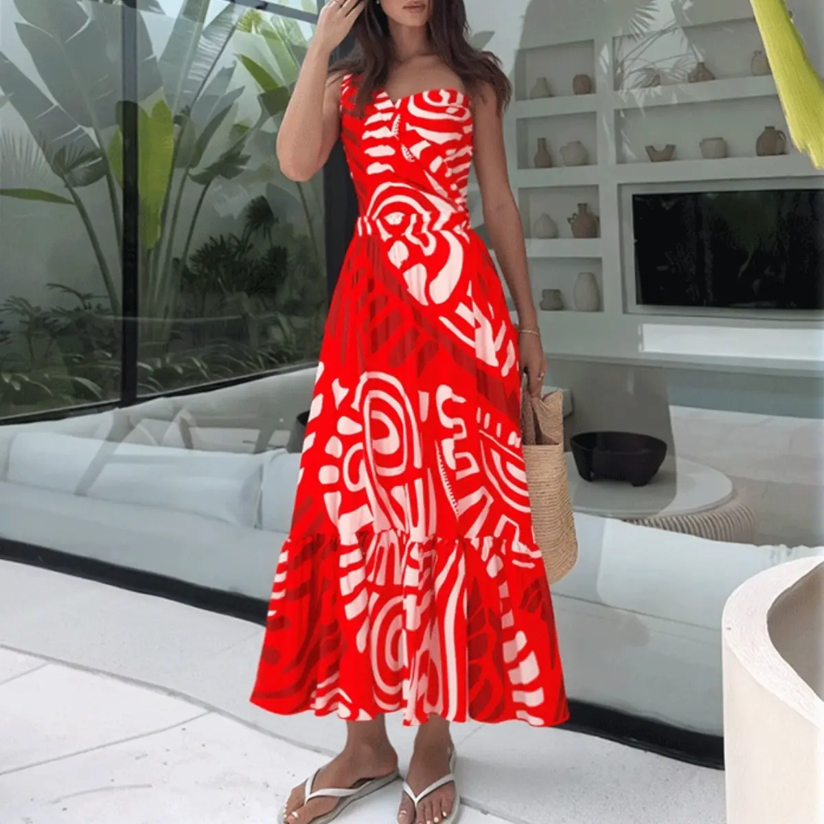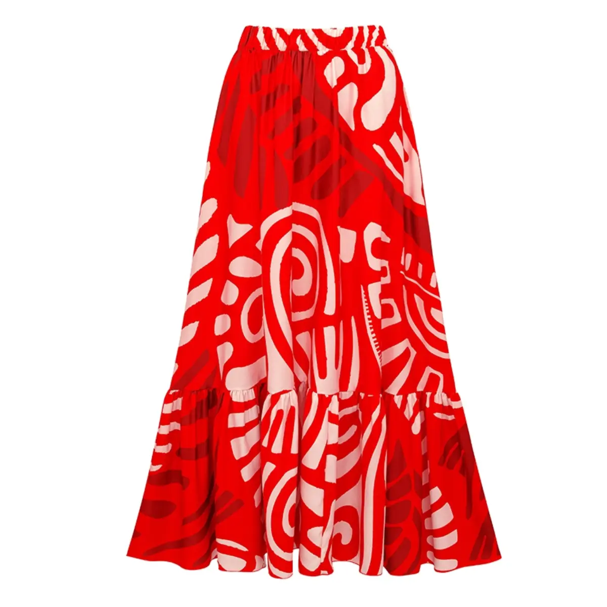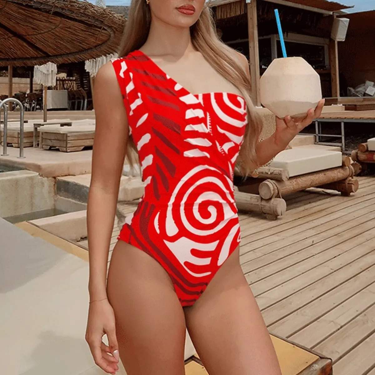 FLAXMAKER Women's One Shoulder Red Retro Print One Piece Swimsuit and Matching Cover Skirt Set Swimdress Stylish Beachwear Bathing Suit