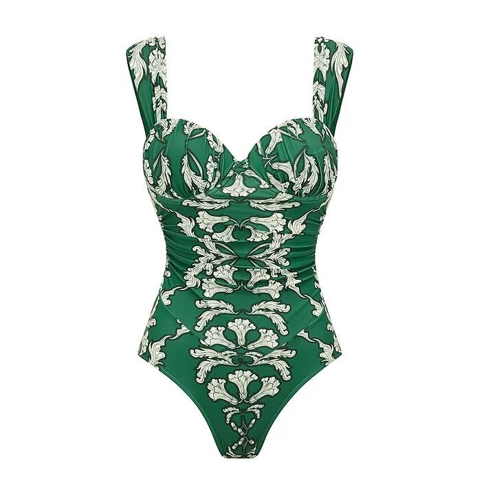 FLAXMAKER Women's Push Up Underwired Ruched Diamond Neckline Green Print One Piece Swimsuit and Matching Skirt Set Swimdress Swimwear #FallFreshness vacation outerwear clothing swim