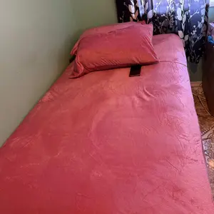 Me encantó este cubre cama está muy bonito es como aterciopelado y a mí cama le quedó perfecto lo único malo es que trae fundas para almohada pequeña y las mías son grandes espero y les sirva el dato