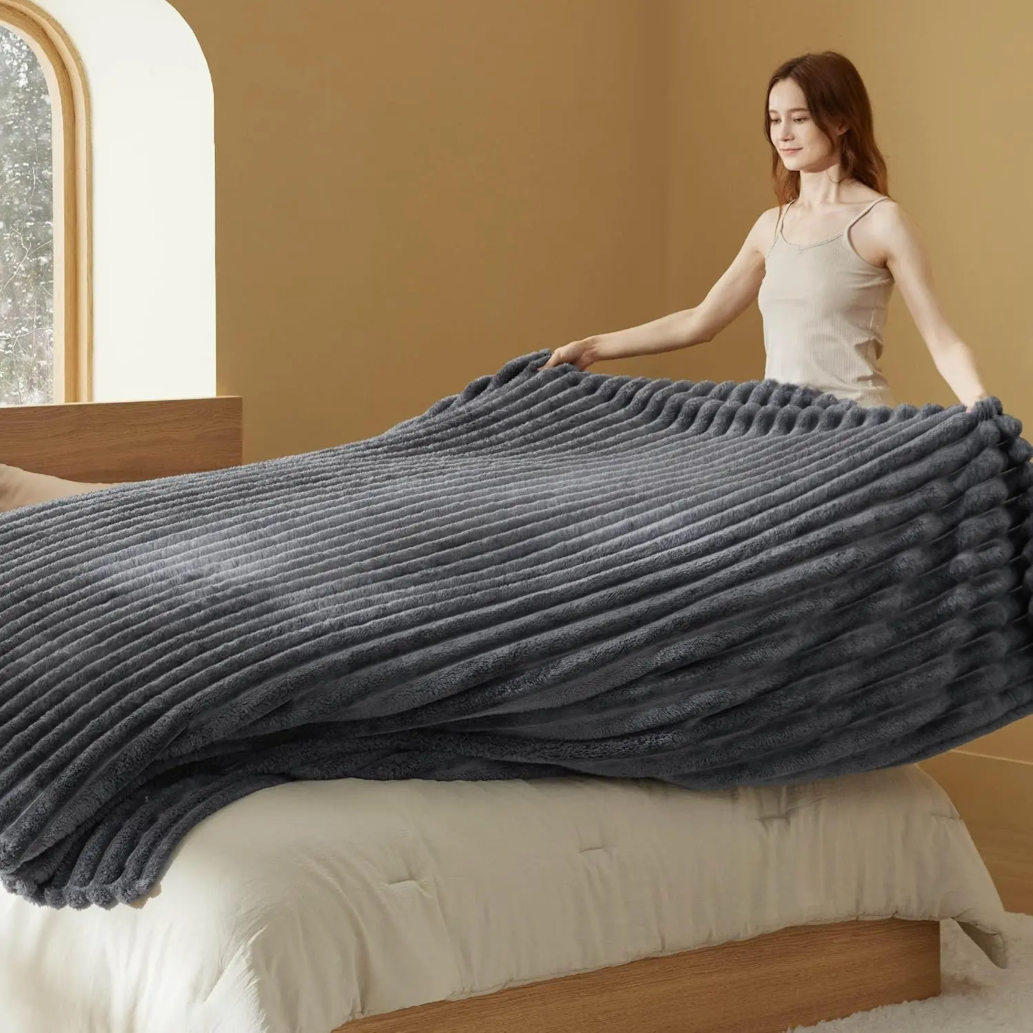 ·Wider Stripe Design: Featuring upgraded fine-striped detailing, 2.2-inch wide stripes, this blanket has a more visually impactful and luxurious look compared to standard blankets, adding a touch of elegance and comfort to your living space