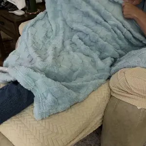 This blanket is so soft so fuzzy and even just the queen size is so big! The color here is the jadeite and Iโll be ordering these as Christmas gifts!