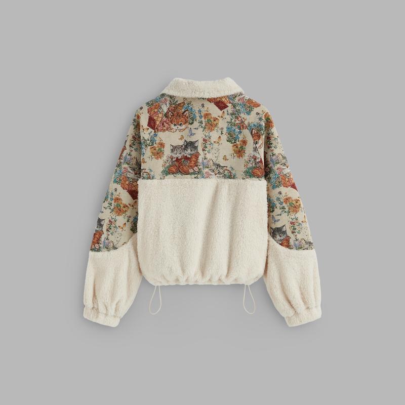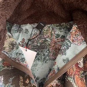 Jacket is cute. It’s extremely cropped, recommend sizing up. It’s also not lined and feels cheap, material is very thin so if you want to be warm you have to wear something underneath. A little worried about how it will wash.
