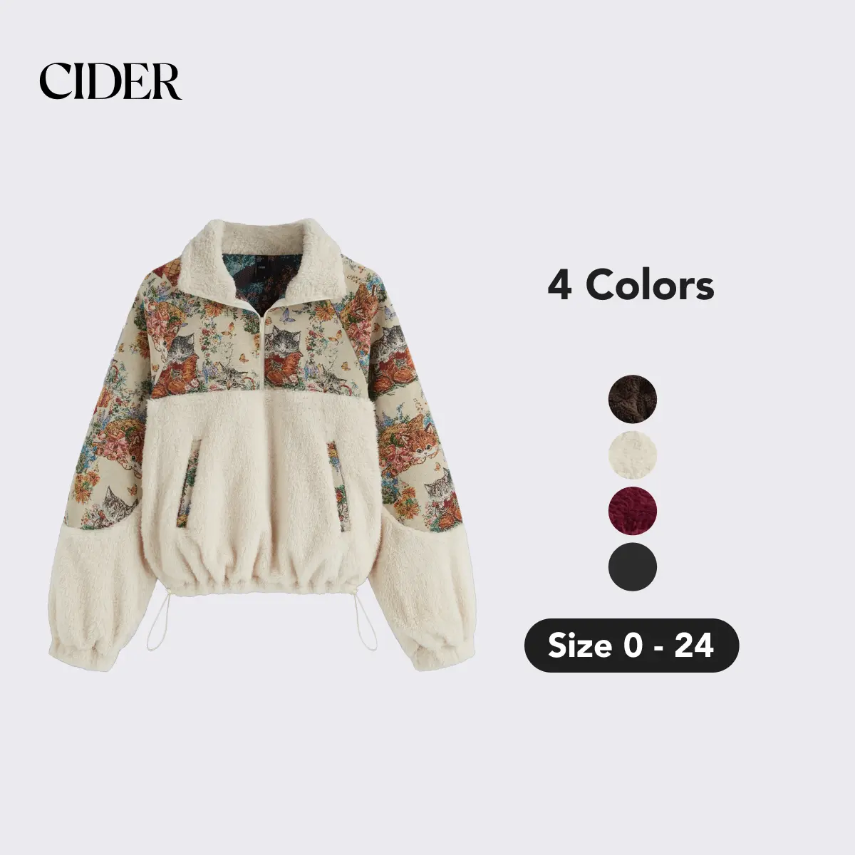 Great quality. Comfy over sized sleeves. The kittens are so cute!