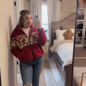 I’ve been eyeing this sweater jacket for a while now and finally the price dropped and I snagged it before it was sold out. I wanted a medium but they only had a large and I’m glad it got the large because it’s fits perfectly. I normally wear a medium. So festive