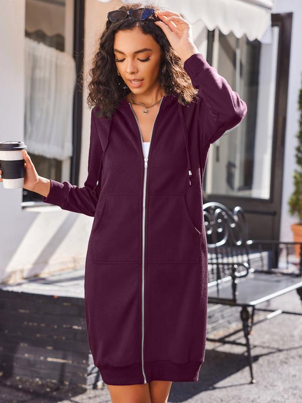 ·Features: Knee Length, Cropped Zip-up Hoodie, Long Sleeve Fleece Sweater Dress, Drawstring Hood and Zip Fastening, Side Pockets, Casual loose style, Long Hoodie Tunic.