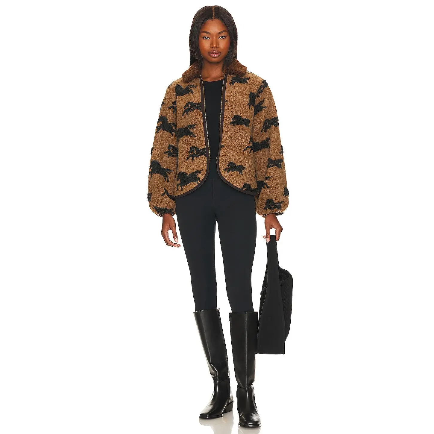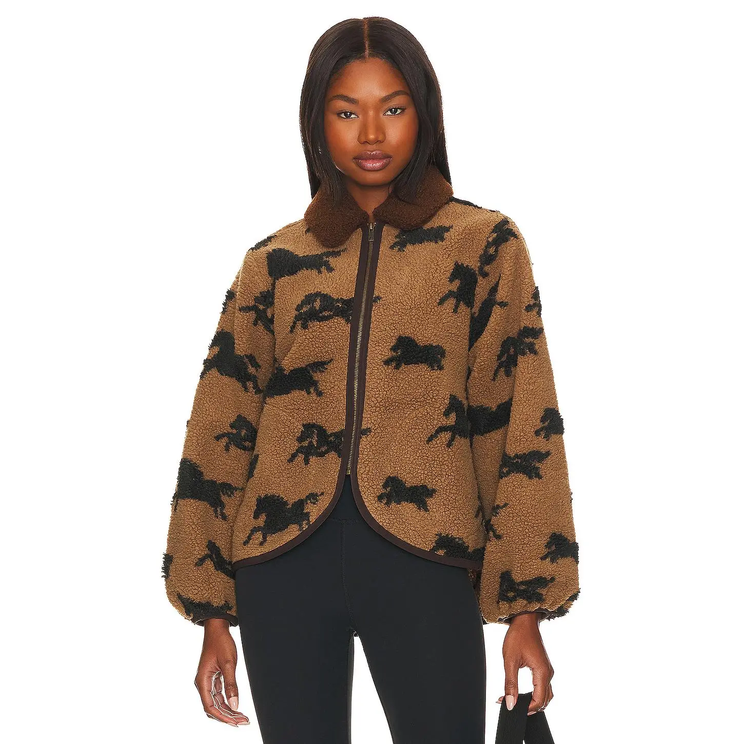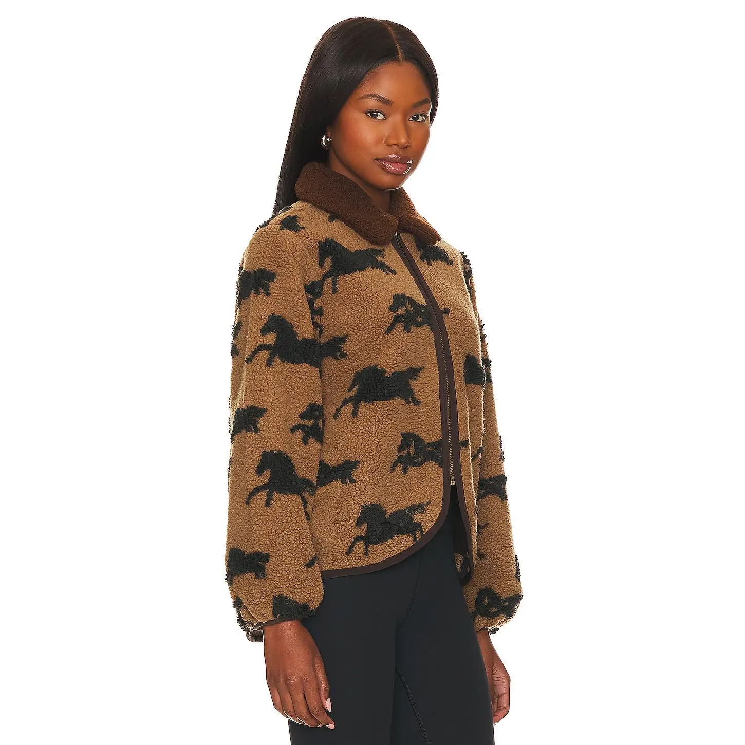 ·Curled fleece fabric with contrast trim