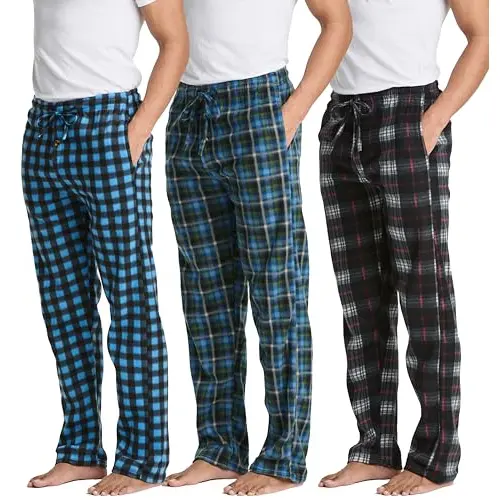 Real Essentials 3 Pack: Mens Fleece Plaid Pajama Pants - Lounge Pajama Bottoms(Available in Big & Tall)