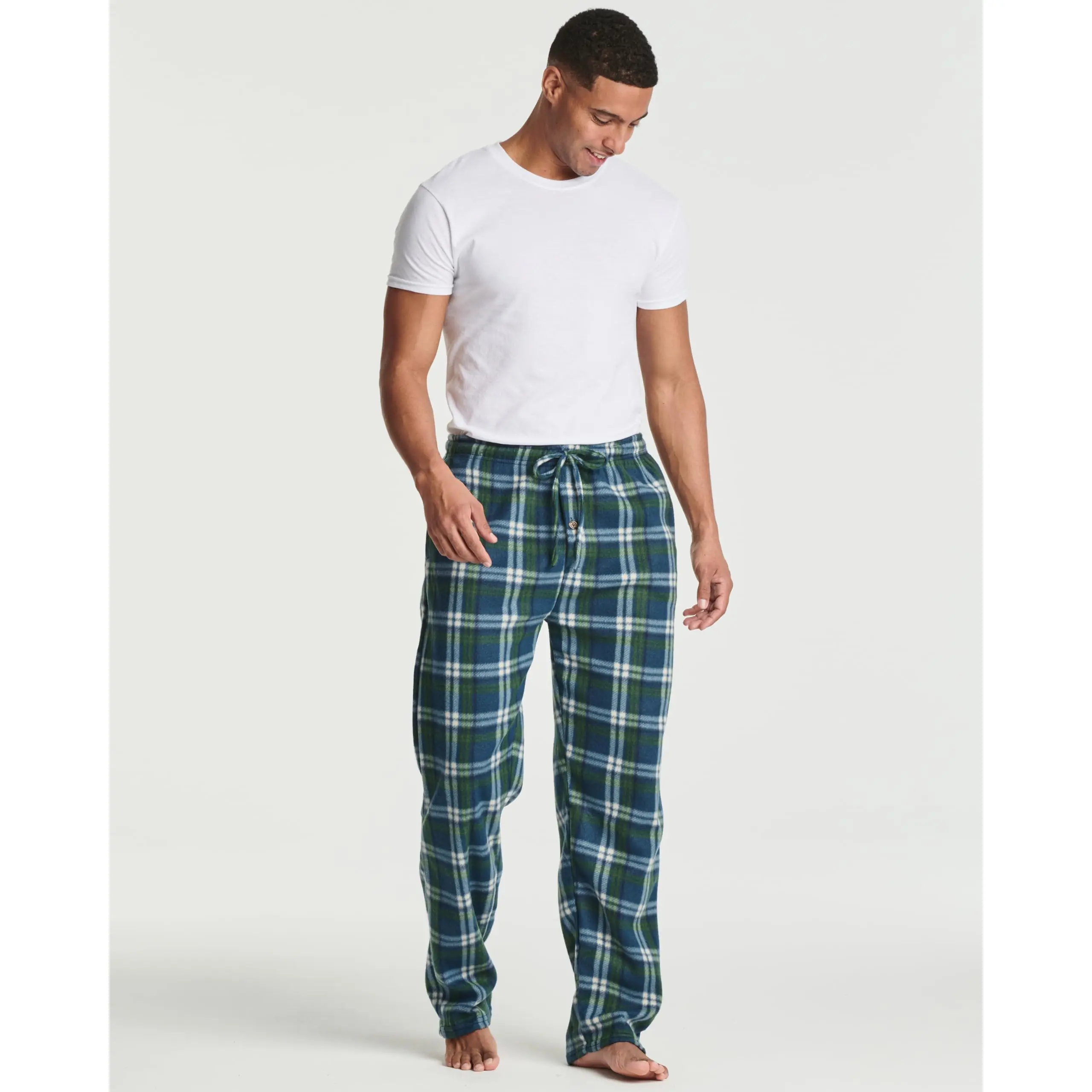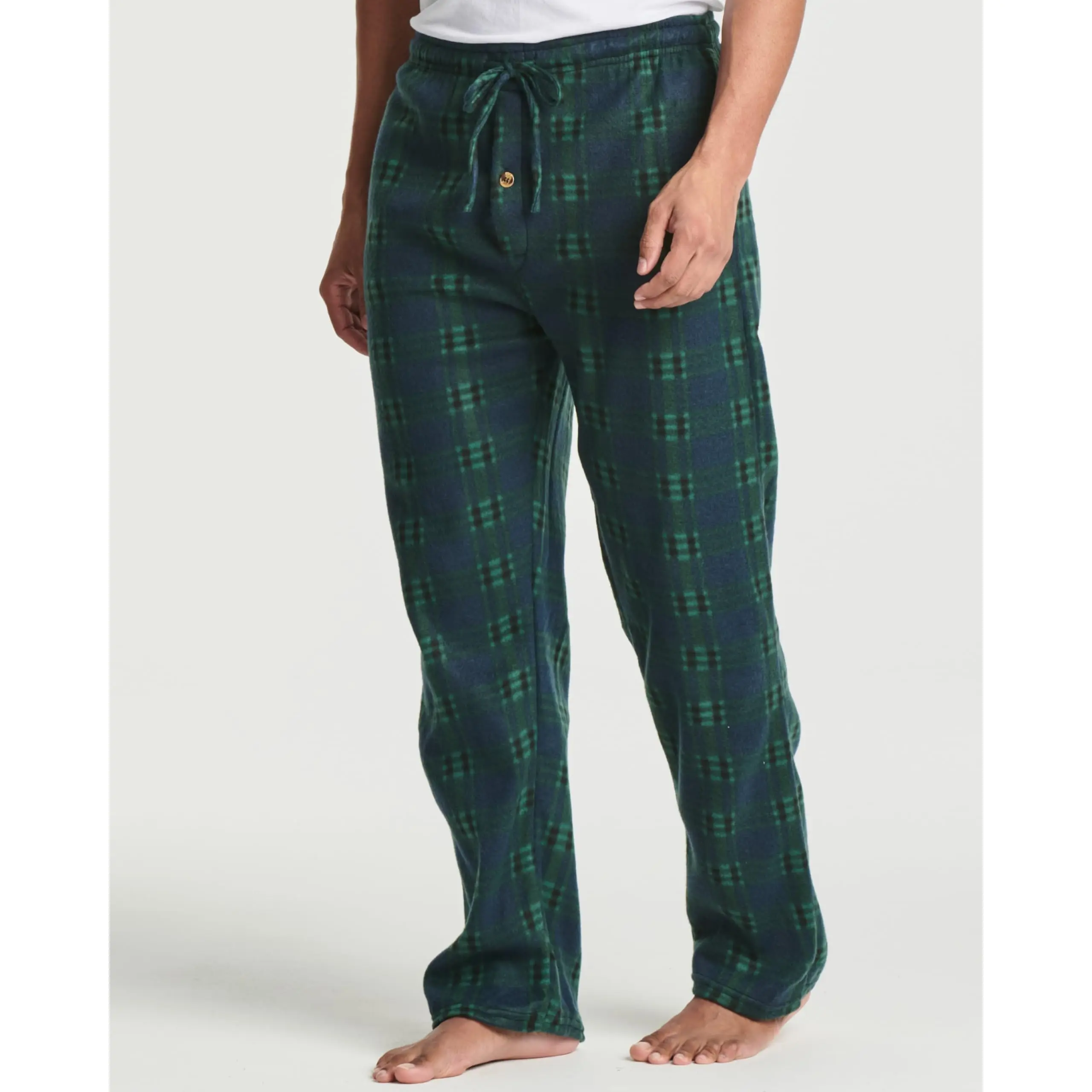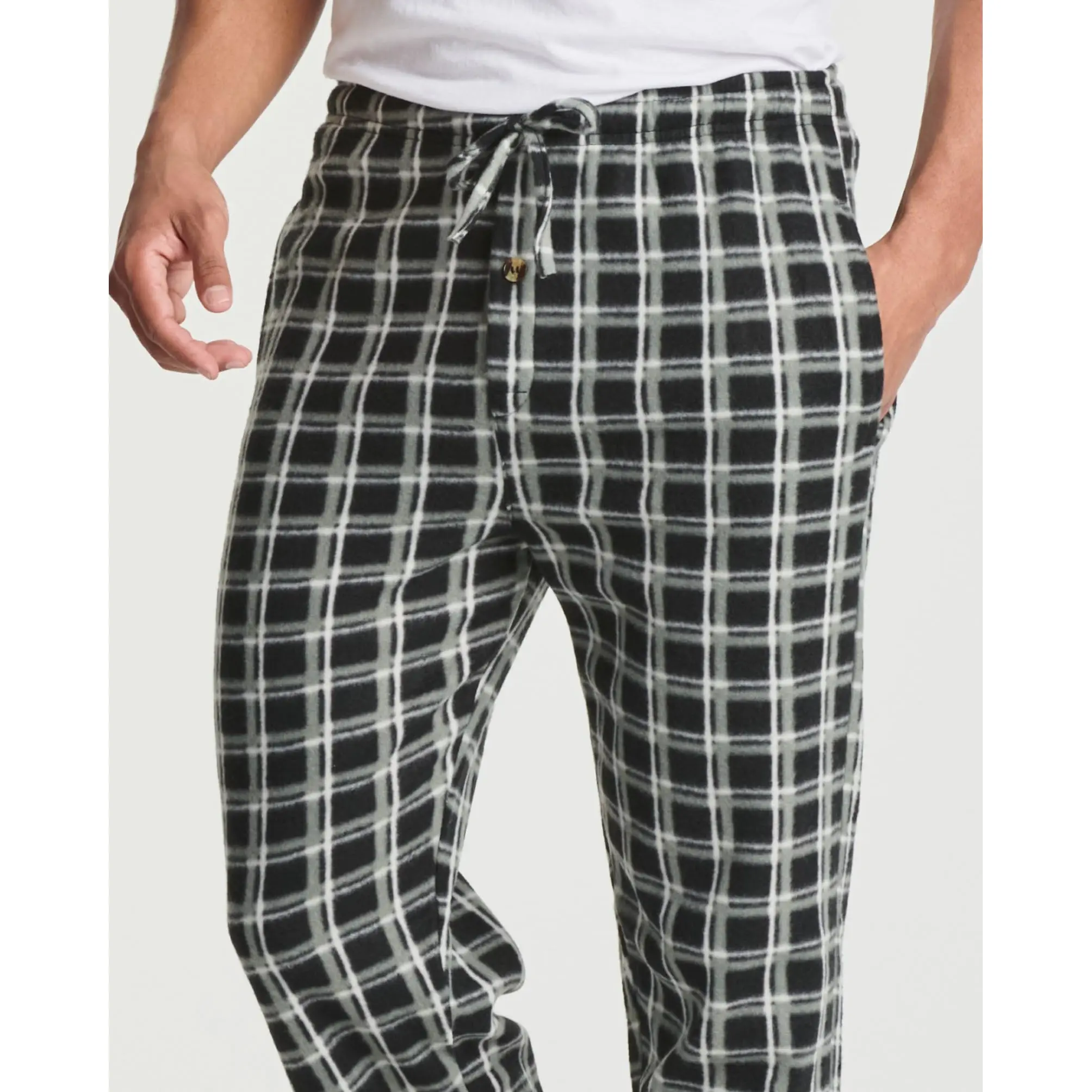 Real Essentials Men's Microfleece Pajama Lounge Pants Bottoms are comfortable, durable, and classy. Made from premium 100% Polyester fabric, these men's pajama bottoms are cool and soft on skin. Designed with you in mind, these pajama pants are perfect for lounging around the house even when guests are over. Rich in features, these MicroFleece Pajama Lounge Pants for men will not disappoint. Pajama Pants Features -Premium 100% Polyester fabric -Elastic waistband with drawstring -Two on-seam pockets -Durable stitching that will last -Machine washable (see easy wash instructions below) Enjoy the comfort of Fleece without the extra bulk. Our lightweight, Fleece fabric is perfect for sleeping and lounging on cooler evenings. Soft to the touch and easy on the skin Real Essentials flannel is the perfect fabric choice for all of your sleepwear needs. On-seam pockets are a great addition to any garment because they provide the convenience of a pocket cleverly hidden in the side seam of the pocket. These pockets are perfectly placed for a number of different applications: -Keep your hands warm inside these well-placed pockets -Store tissues, a snack, or your phone right on your side -Maintain a casual and relaxed presence in front of others while you lounge Elastic Waist and Drawstring Let's face it - we all have different preferences when it comes to how our pajamas fit. Some like it loose, other's like it tight. That's why the go-to style for pajama bottoms is the elastic waist with a drawstring tie. The elastic waist helps the bottoms to loosely hug the waist, while the adjustable drawstring allows you to pull the bottoms as tightly as you like - ensuring a perfect, custom fit every time. You never have to worry about how your pajama bottoms will fit when you choose a pair with an elastic waist and drawstring.